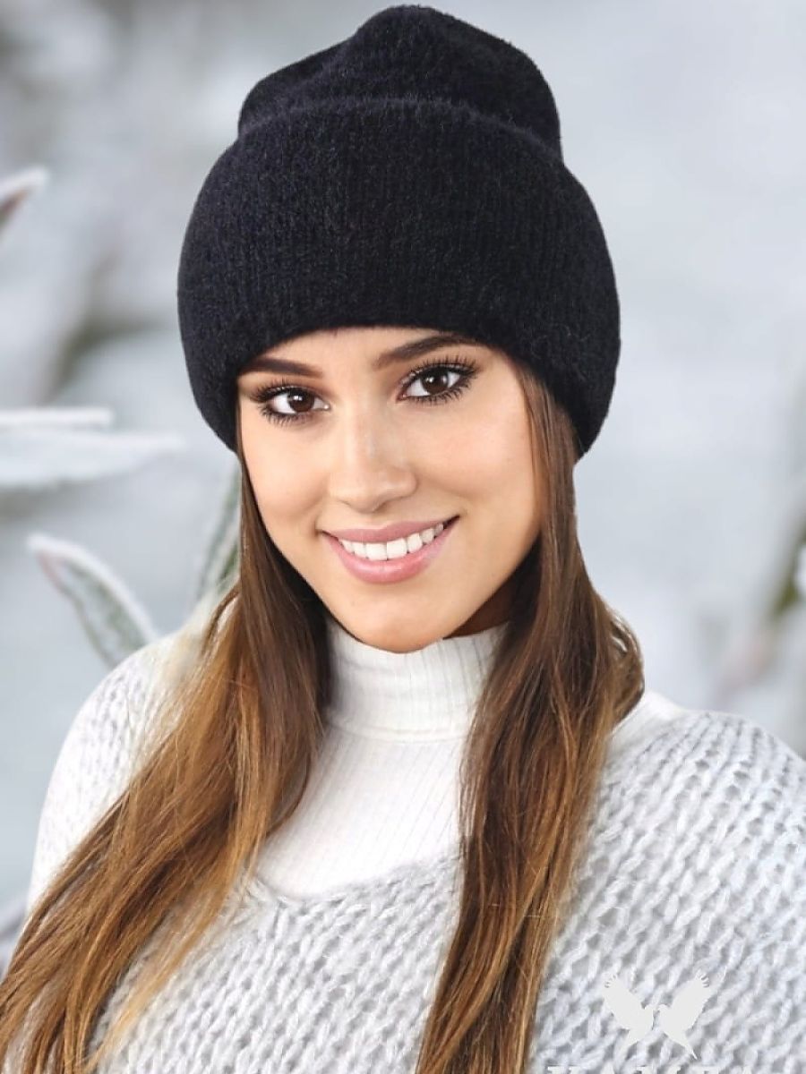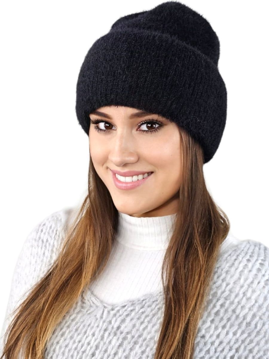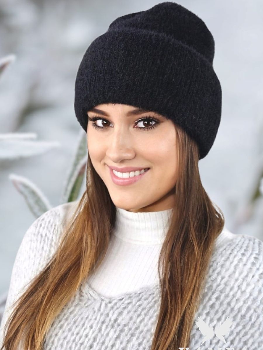 BENITA zimowa czapka alpaka z wywinięciem kolor czarny – Kamea