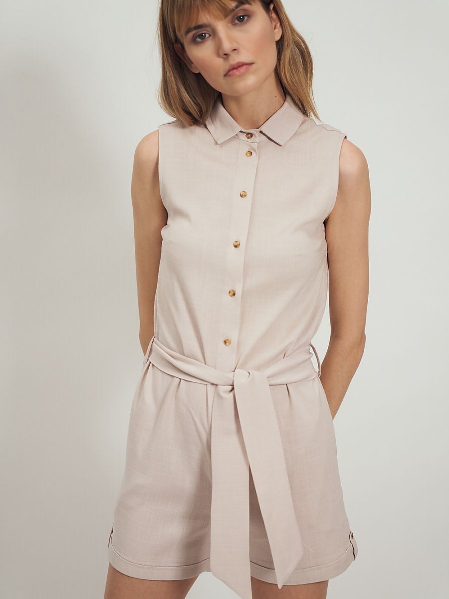 Beżowy kombinezon bez rękawów KM22 Beige – Nife
