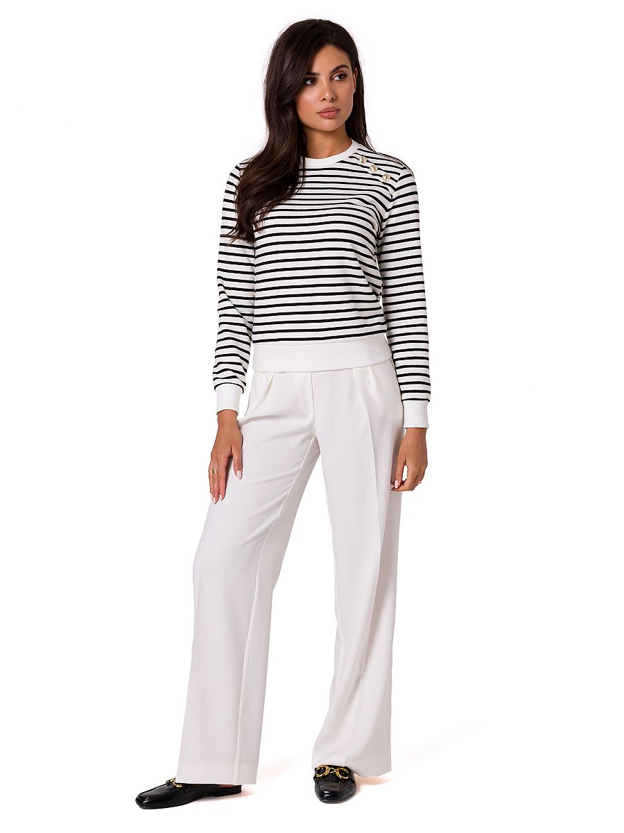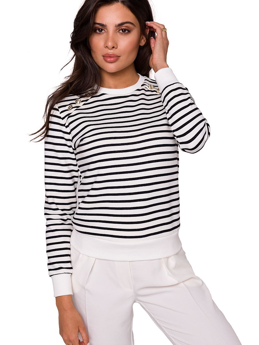 Ta bluza z bawełnianej dzianiny dresowej w marynarskie paski z ozdobnymi, złotymi guzikami to sportowa elegancja w najlepszym wydaniu.