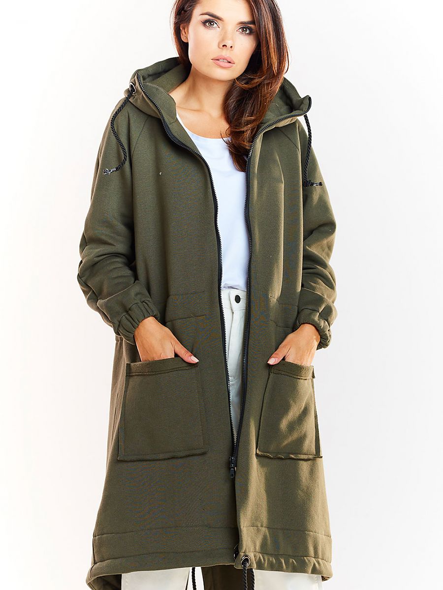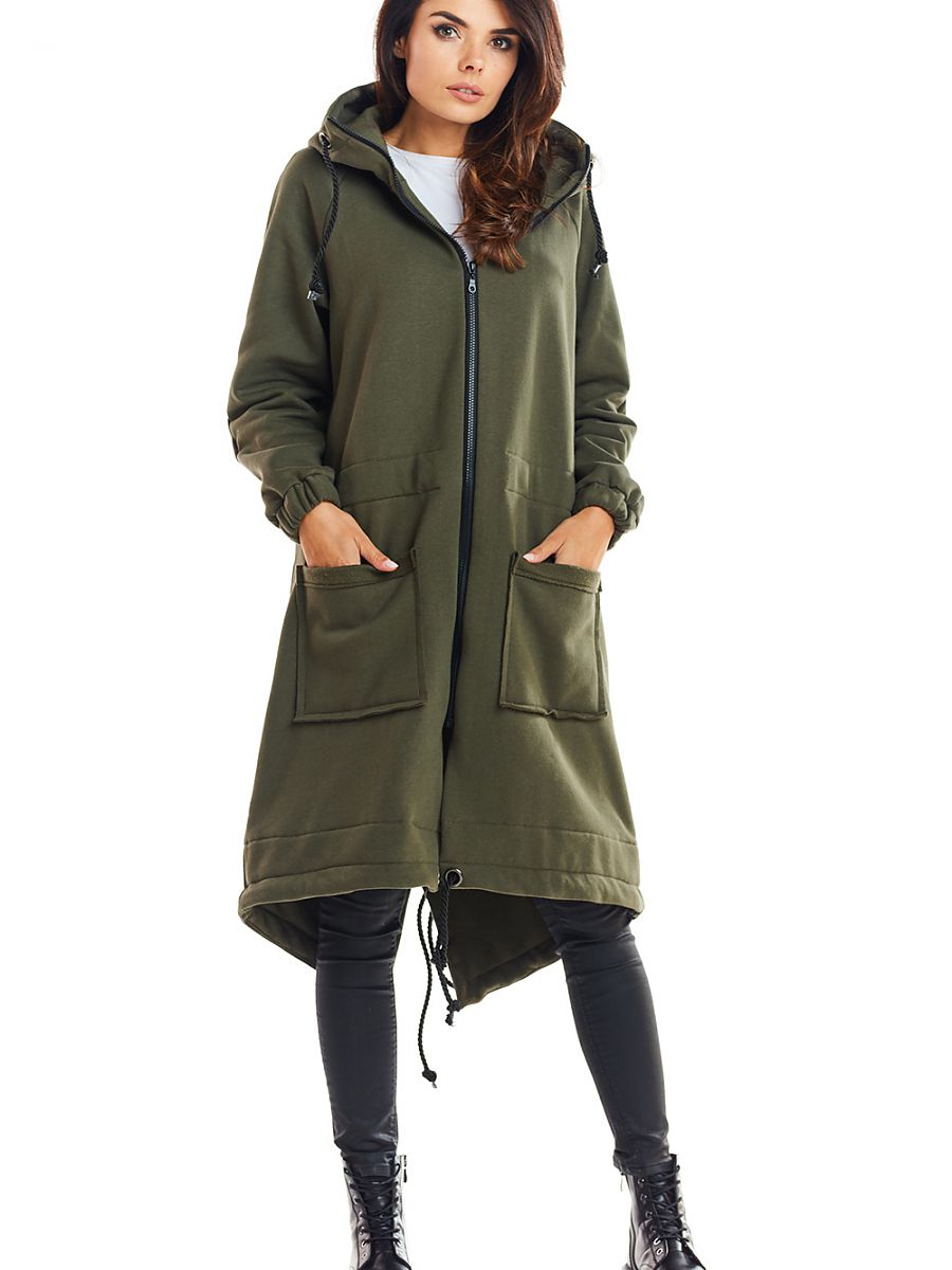 Ciepła parka uszyta z miękkiego dresu. Idealna na jesień i zimę. Z przodu są kieszenie, zapinana na zamek. Bluzę można dopasować do sylwetki, dzięki temu że w talii jest sznurek. Absolutny must have sezonu.