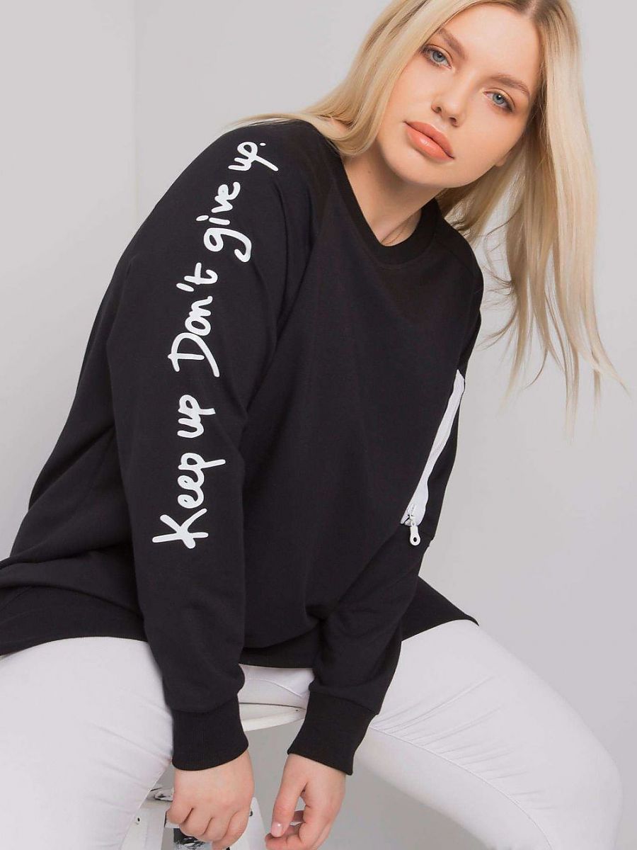 Czarna bluza damska plus size z długim rękawem. Na rękawie ozdobny zamek.