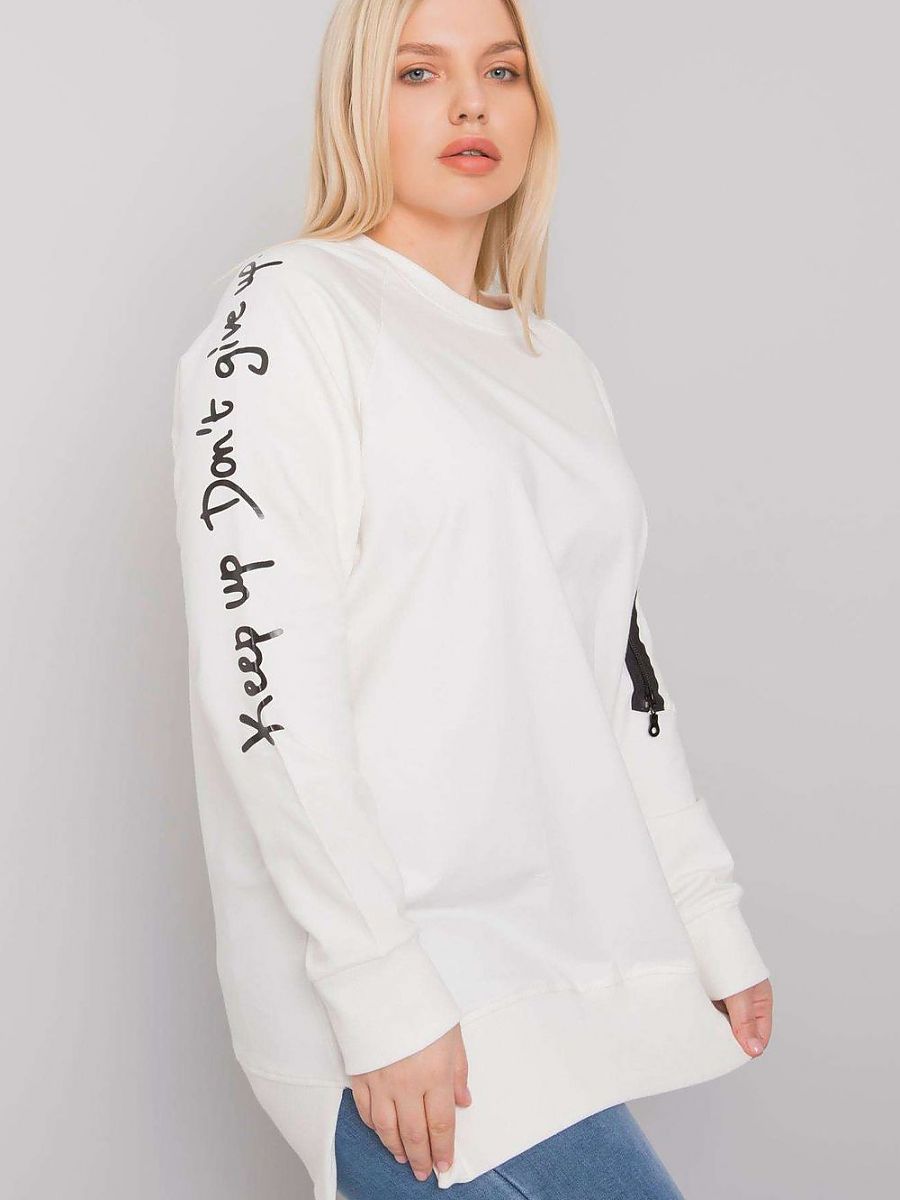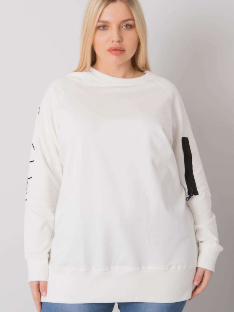 Bluza damska plus size w kolorze ecru z długim rękawem. Na rękawie ozdobny zamek.