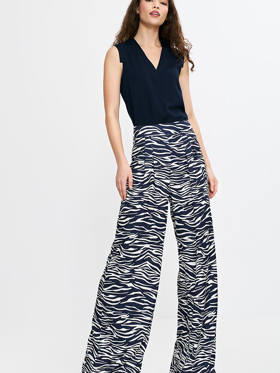 Lekka i elegancka bluzka o regularnym kroju, wykonana z przyjemnego wiskozowego materiału. Dekolt w kształcie litery V subtelnie podkreśla szyję, dodając całości kobiecego charakteru. Bezrękawowy fason zapewnia swobodę i komfort noszenia, a wykończenie dekoltu oraz ramion delikatną pliską nadaje bluzce stylowego wyrazu. Model wkładany przez głowę, doskonały zarówno do codziennych, jak i bardziej eleganckich stylizacji.