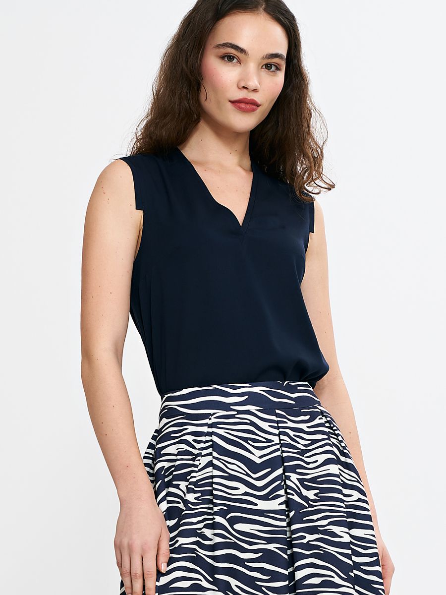 Bluzka bez rękawów z dekoltem V B191 Navy – Nife