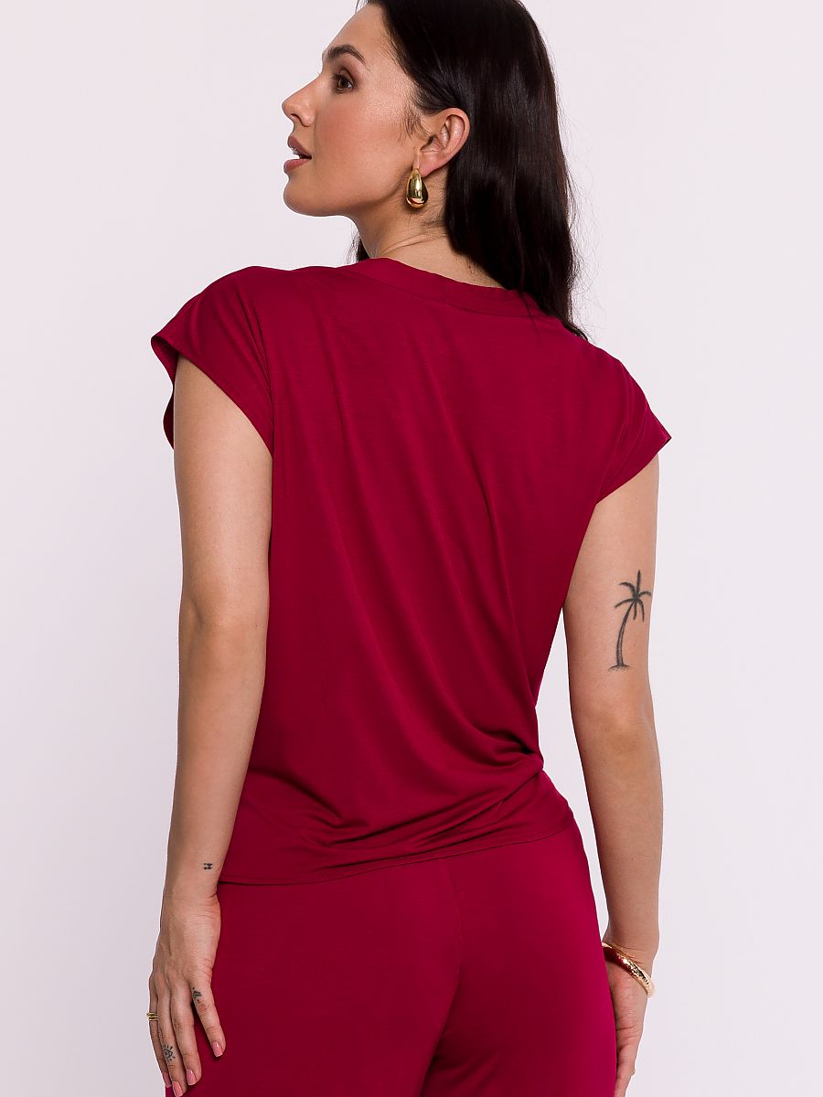 Bluzka damska to perfekcyjne połączenie komfortu, elegancji i unikalnego designu. Wykonana z najwyższej jakości dzianiny wiskozowej, ta bluzka zapewnia niezrównany komfort noszenia oraz delikatność dotyku. Dzięki starannie dobranemu materiałowi, bluzka prezentuje się nie tylko stylowo, ale także podkreśla naturalny blask i kształty kobiecej sylwetki. Jej wyjątkowość wynika z fasonu kopertowego z drapowaniem, który nadaje bluzce lekki, finezyjny charakter. Bluzka układa się na ciele w sposób delikatny i jednocześnie intrygujący, co sprawia, że jest doskonałym wyborem na wiele różnych okazji. Głęboki dekolt dodaje kobiecości i subtelnie eksponuje dekolt, nadając całości wyjątkowej elegancji. Krótkie nietoperzowe rękawy dodają bluzce lekkości i swobody ruchu, tworząc efektowny kontrast z klasycznym kopertowym fasonem. To idealne rozwiązanie dla kobiet, które cenią sobie modowe nowości i chcą wyrazić swoją indywidualność poprzez unikalne kroje. Należy podkreślić, że bluzka została zaprojektowana i wyprodukowana w Polsce, co gwarantuje najwyższą jakość wykonania oraz dbałość o detale. To nie tylko elegancki element garderoby, ale także wyraz wsparcia dla rodzimej produkcji. Odkryj nowy wymiar stylu i wygody dzięki tej bluzce dzianinowej z fasonem kopertowym, połączeniu polskiego rzemiosła i międzynarodowego trendu modowego.