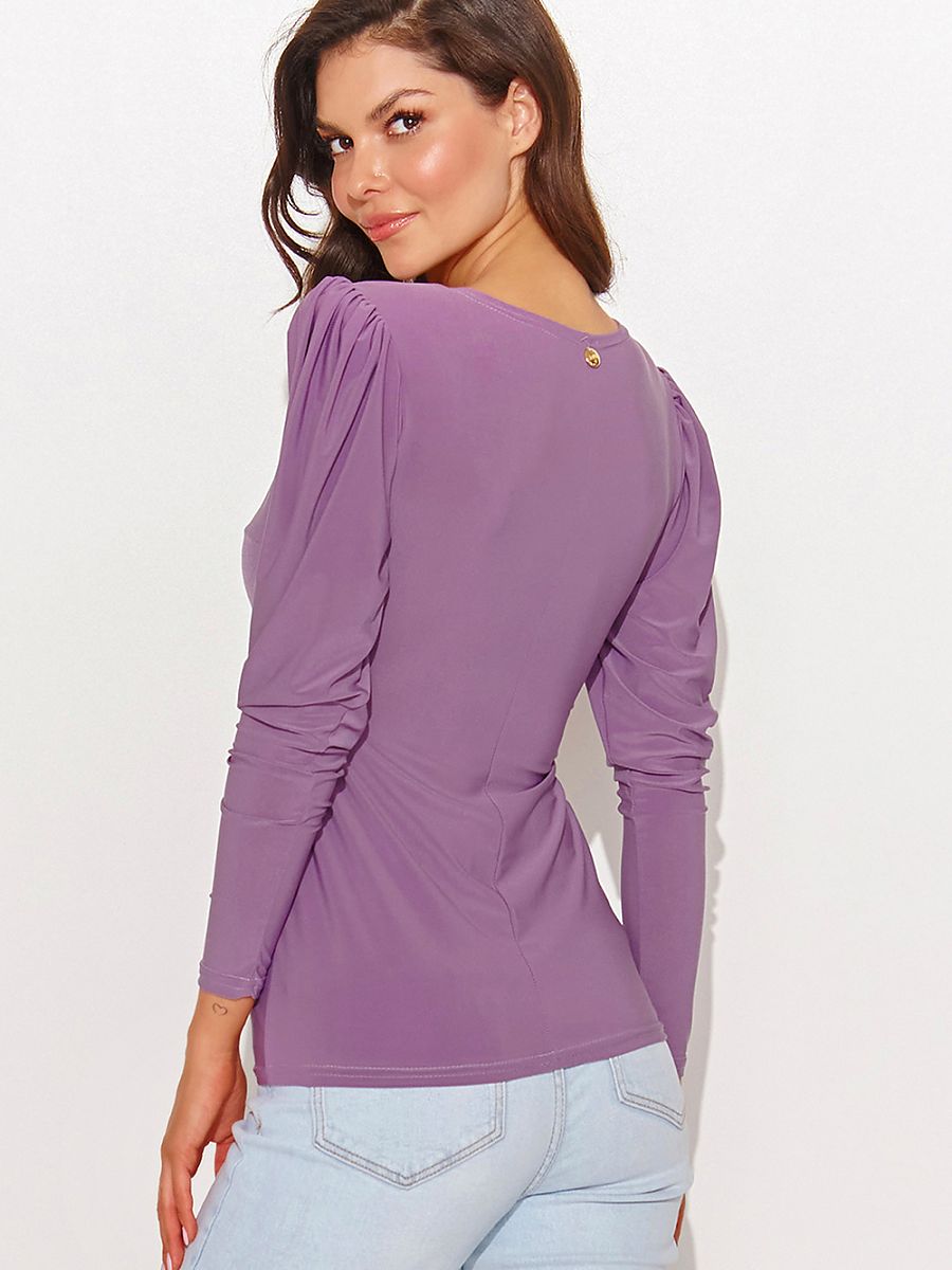 Bluzka damska o dopasowanym kroju, to doskonała baza pozwalająca zbudować wiele unikatowych stylizacji. Bluzka posiada dekolt w kształcie litery V, który dodatkowo wydłuży sylwetkę, natomiast bufiaste rękawy poszerzą optycznie ramiona i dodadzą kobiecości. Dzięki tym charakterystycznym elementom, bluzka prezentuje się niezwykle modnie i nieco romantycznie. Akcent metalowej blaszki w górnej części pleców, dodatkowo dodaje jej nuty elegancji. Możesz ją zestawić z rozkloszowaną spódnicą jeśli chcesz zrównoważyć sylwetkę lub z dopasowanymi spodniami i outfit do pracy jak i na wieczorne wyjścia masz gotowy. Szeroki wybór kolorów, umożliwi Ci wybranie takiego, który idealnie wkomponuje się w Twoją garderobę.