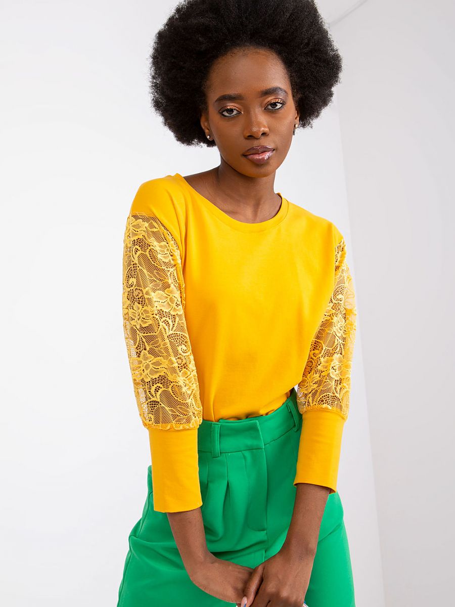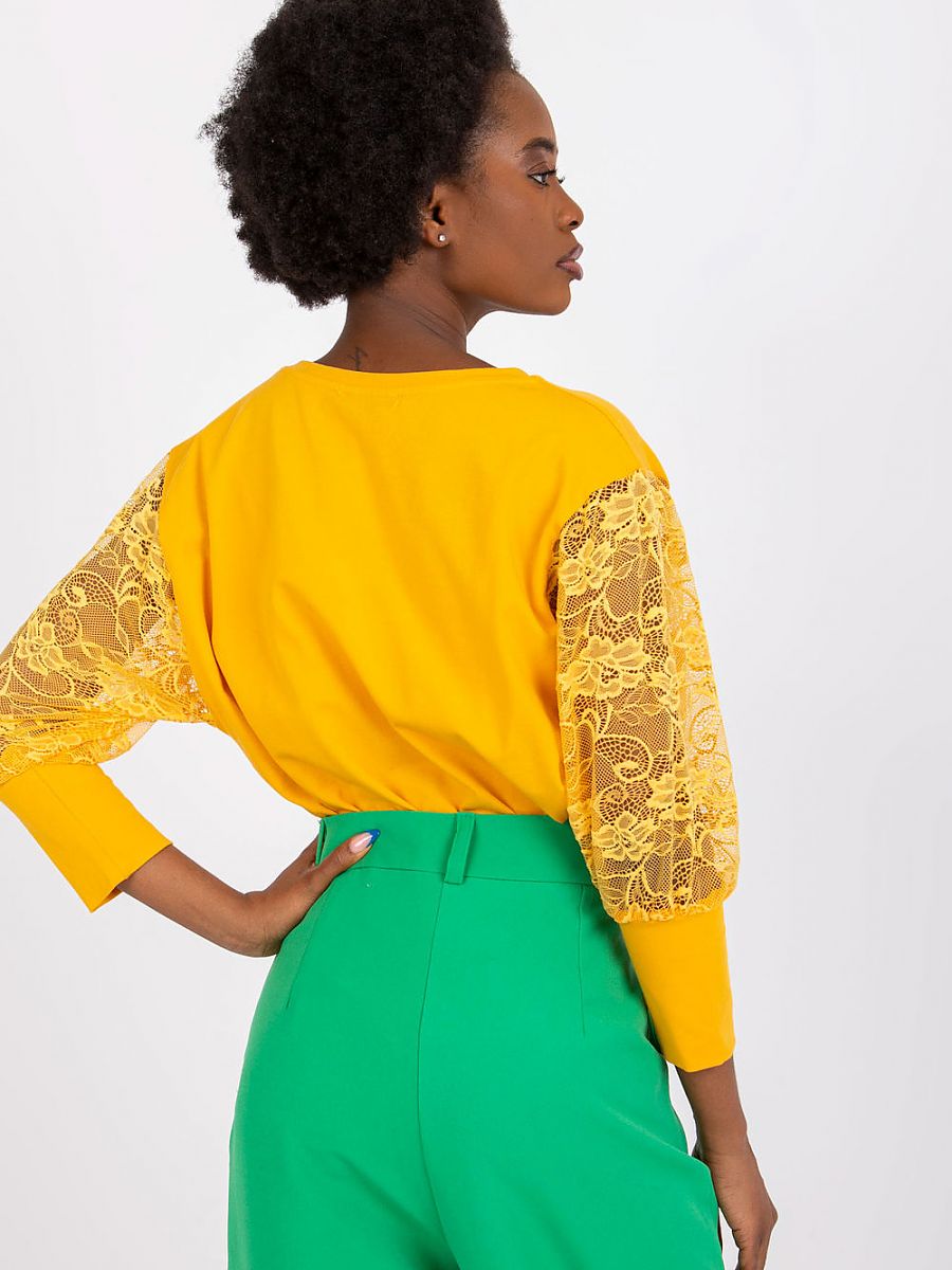 Bluzka o prostym kroju z koronkowymi rękawami 3/4 oraz okrągłym dekoltem.
