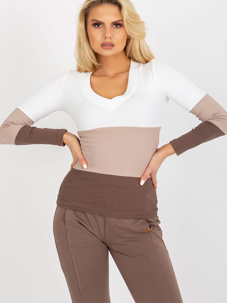 Bluzka Model RV-BZ-8431.31X White/Brown – Rue Paris