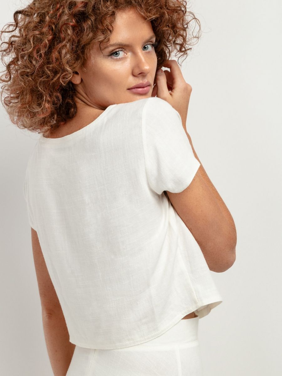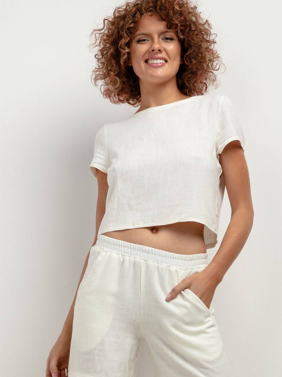Szukasz idealnego ubrania na upalne dni? Bluzka z lnem T401 to doskonały wybór! Wykonana z lekkiego, przewiewnego materiału składającego się w 70% z wiskozy i w 30% z lnu, ta krótka bluzka zapewni Ci nie tylko stylowy wygląd, ale także komfort noszenia nawet podczas najgorętszych dni. Dzięki naturalnym włóknom, które pozwalają skórze oddychać, będziesz czuć się świeżo i swobodnie przez cały dzień. Bluzka z lnem T401 doskonale sprawdzi się jako element letniej garderoby. Jej uniwersalny krój pozwoli Ci stworzyć wiele różnorodnych stylizacji, zarówno na co dzień, jak i na specjalne okazje. Łącząc ją ze spódnicą lub szortami, stworzysz casualową stylizację idealną na spacer czy spotkanie ze znajomymi. Natomiast zestawiona z eleganckimi spodniami czy ołówkową spódnicą będzie doskonałym wyborem na letnie przyjęcie. Dzięki wysokiej zawartości wiskozy bluzka jest niezwykle miękka i przyjemna w dotyku. Lekki materiał sprawia, że poczujesz się swobodnie i komfortowo bez względu na temperaturę panującą na zewnątrz. Dodatkowo len dodaje mu charakterystycznego looku oraz trwałości, dzięki niemu będziesz cieszyć się tym stylem przez wiele sezonów. Bluzka z lnem T401 to nie tylko praktyczny element garderoby, ale również modny detal podkreślający Twój indywidualny styl. Dostępna w różnorodnych kolorach pasujących do wielu innych ubrań sprawi, że łatwo dopasujesz ją do swojej kolekcji letnich ubrań. Bądź gotowa na nadchodzące gorące dni, postaw na połączenie komfortu noszenia oraz modowego designu!