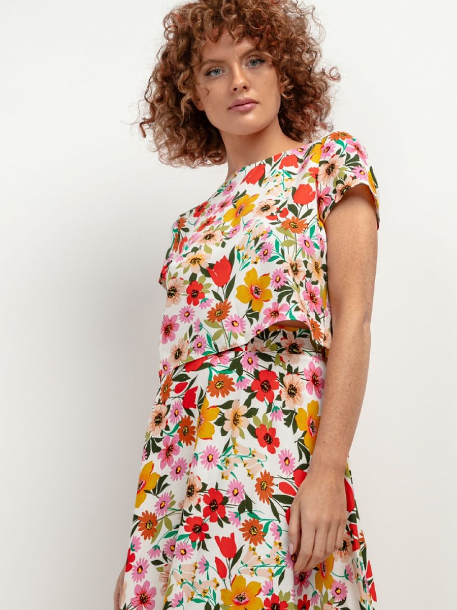 Bluzka Model T408 Kwiaty na białym tle – Tessita