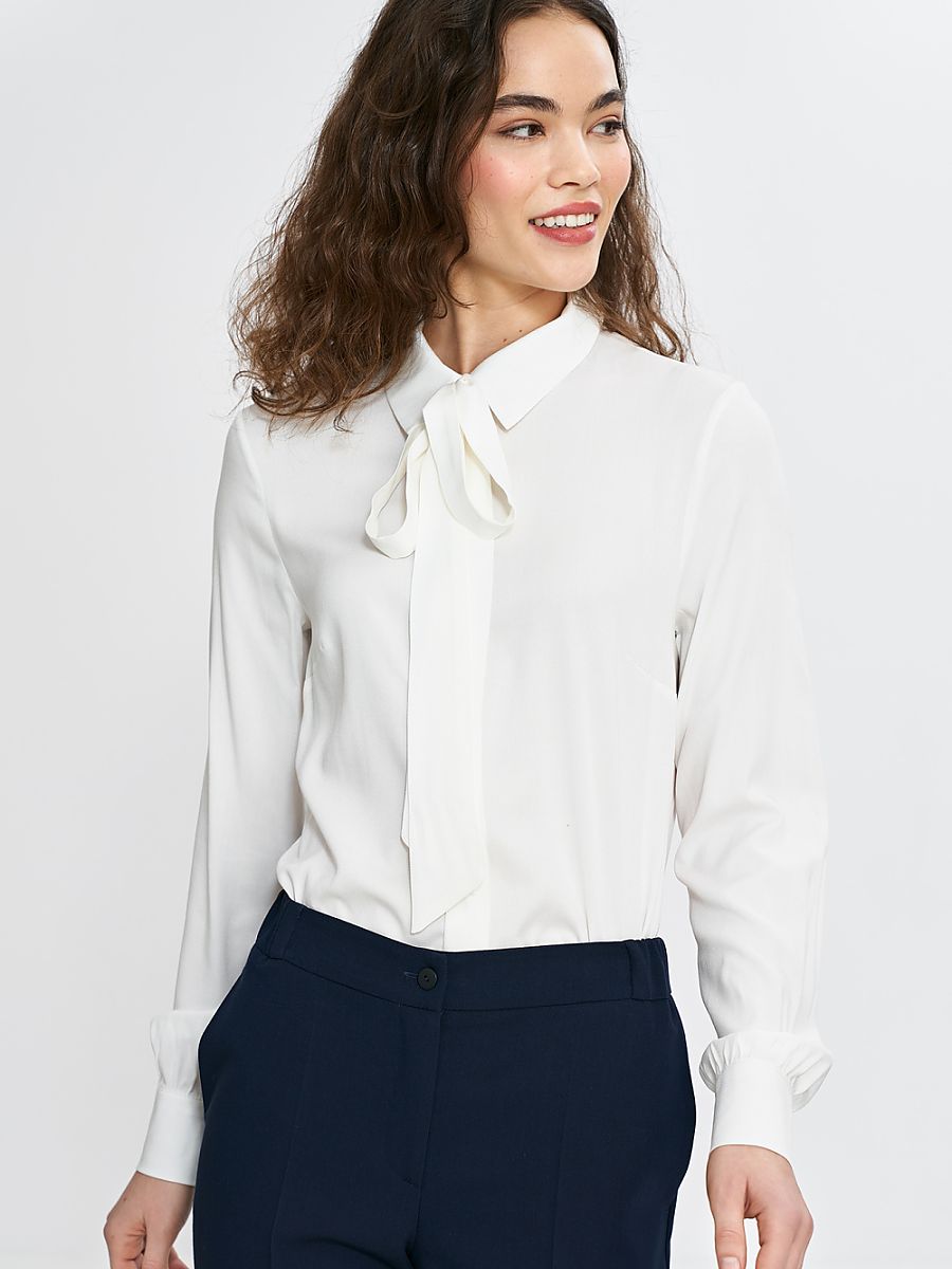 Bluzka z szarfą pod szyją B190 Ecru – Nife