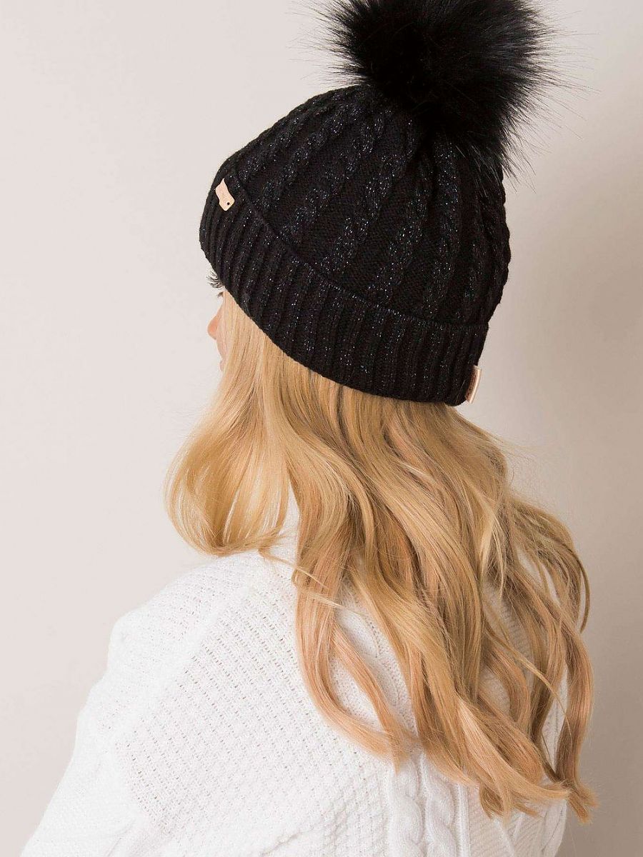 Zimowa czapka damska z podwinięciem, ozdobnym splotem warkoczowym oraz pomponem.