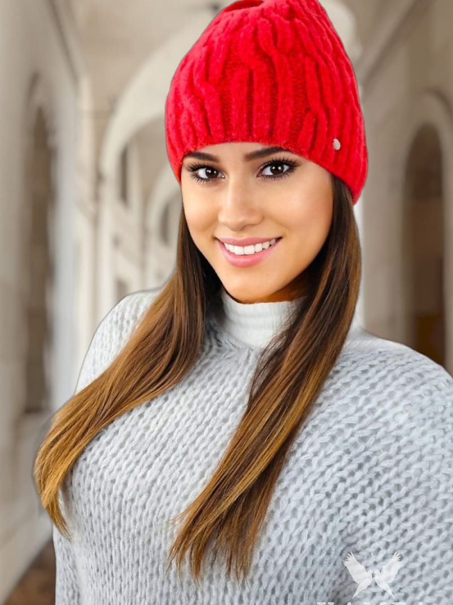GIZMA puszysta zimowa czapka na polarze kolor koralowy – Kamea
