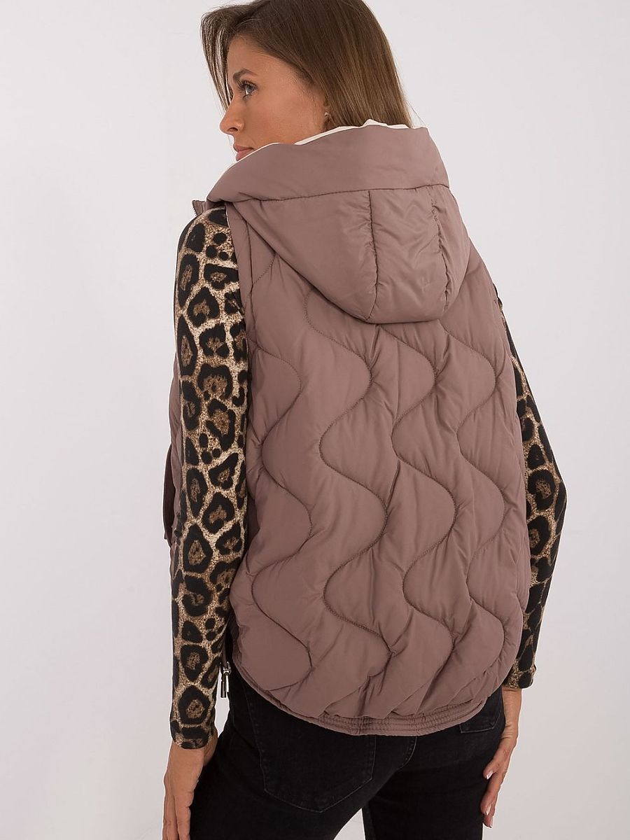 Damska pikowana kamizelka puchowa o gładkiej fakturze, wykonana z poliestru. Idealna na codzienne, casualowe stylizacje, zapewnia komfort i ciepło w chłodniejsze dni. Kamizelka jest wypełniona syntetycznym ociepleniem, które skutecznie chroni przed zimnem, jednocześnie będąc lekkim i wygodnym. Wyposażona w praktyczny kaptur, który dodaje funkcjonalności i stylu. To doskonały wybór dla kobiet ceniących wygodę, ciepło i modny wygląd w codziennych zestawach.