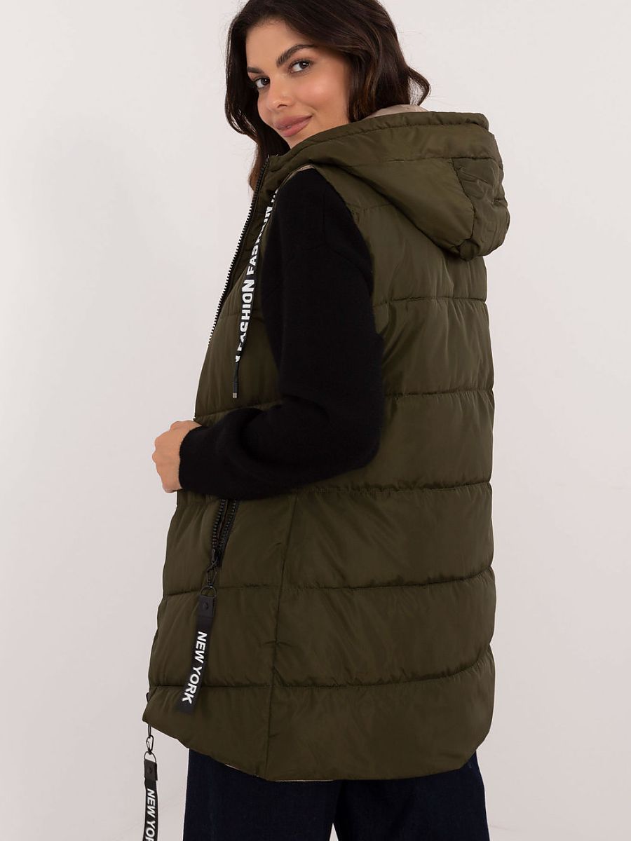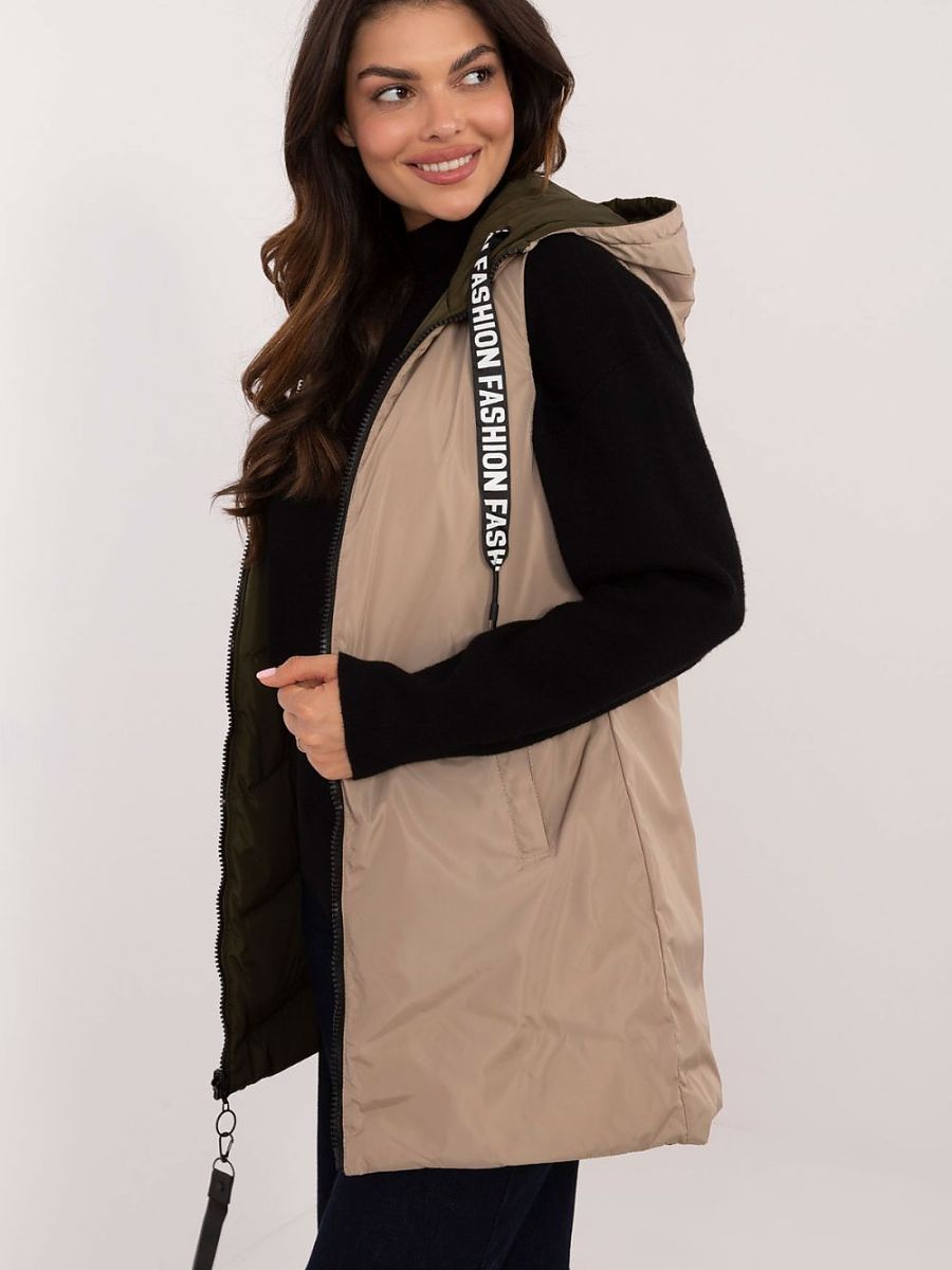 Dwustronna kamizelka to praktyczna i stylowa propozycja na chłodniejsze dni, idealna na co dzień, do pracy lub w casualowych stylizacjach. Pikowana struktura nadaje jej nowoczesnego wyglądu, a wsuwane kieszenie zapinane na zamek po jednej stornie, po drugiej tylko wsuwane zapewniają funkcjonalność i bezpieczne przechowywanie drobiazgów. Wykonana z wytrzymałego poliestru, z syntetycznym ociepleniem, doskonale sprawdzi się w sezonach jesienno-zimowych oraz wiosennych, gwarantując ciepło i komfort. Kamizelka posiada zamek błyskawiczny oraz kaptur, który chroni przed wiatrem i chłodem. Gładki wzór oraz długość przed kolano czynią ją wszechstronnym elementem garderoby, który łączy praktyczność z modnym wyglądem.