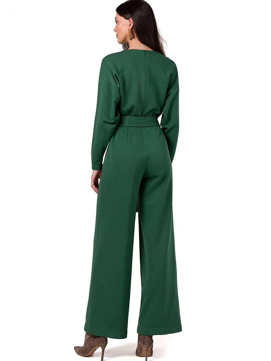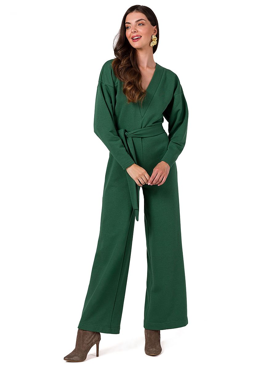 Idealny wybór na każdą okazję, dzianinowy kombinezon z paskiem. Stworzony z miękkiej i elastycznej dzianiny, zapewnia niezrównany komfort przez cały dzień. Bez względu na to, czy jesteś w ruchu, czy relaksujesz się w domu, ten kombinezon dostosowuje się do Twojego ciała. Jego dekolt V ozdobiony jest szeroką plisą, a pasek do przewiązania w talii podkreśla sylwetkę. Natomiast długie i szerokie nogawki oraz obniżona linia ramion składają się na jego nowoczesny design. Bez względu na to, czy chcesz zaskoczyć swoją stylizacją na specjalną okazję, czy po prostu cieszyć się codziennym komfortem, kombinezon z szerokimi nogawkami sprawdzi się doskonale. Spraw sobie przyjemność i zainwestuj w ten niezastąpiony element garderoby już dziś! Wyprodukowany w Polsce.