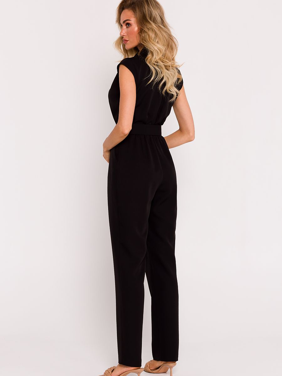 Prezentujemy wyjątkowy kombinezon z tkaniny, którego projekt i wykonanie odzwierciedlają najwyższe standardy polskiego krawiectwa. Ten jednoczęściowy kombinezon to połączenie nowoczesności, wygody i unikalnego stylu, emanującego z polskiego rzemiosła krawieckiego. Nogawki kombinezonu, zwężane ku dołowi, przykuwają uwagę ozdobną asymetrią na boku, dodając całości subtelnej ekstrawagancji. Górna część kombinezonu to kopertowa bluzka bez rękawów, z eleganckim kołnierzem i dekoltem w kształcie litery V. To połączenie klasyki z nowoczesnością, tworzące efektowny i stylowy look. W talii z przodu kombinezonu znajduje się zapięcie na mini napki oraz kryty zamek rozporkowy, co sprawia, że ubranie nie tylko prezentuje się elegancko, ale również jest łatwe do założenia i zdejmowania. Tył talii jest elastyczny, co zapewnia doskonałe dopasowanie kombinezonu do sylwetki, przy jednoczesnym zachowaniu komfortu. Boczne kieszenie to praktyczny element, dodający kombinezonowi użytkowego charakteru. Dodatkowo, do zestawu dołączony jest pasek z klamrą, który pozwala na podkreślenie talii, nadając stylizacji dodatkowego uroku. Ten kombinezon to nie tylko ubranie, to wyraz polskiej precyzji i kreatywności w modzie. Projekt i produkcja w Polsce to gwarancja wysokiej jakości wykonania oraz dbałości o detale, co sprawia, że noszenie tego kombinezonu staje się nie tylko wygodne, ale również przyjemne dla oka.