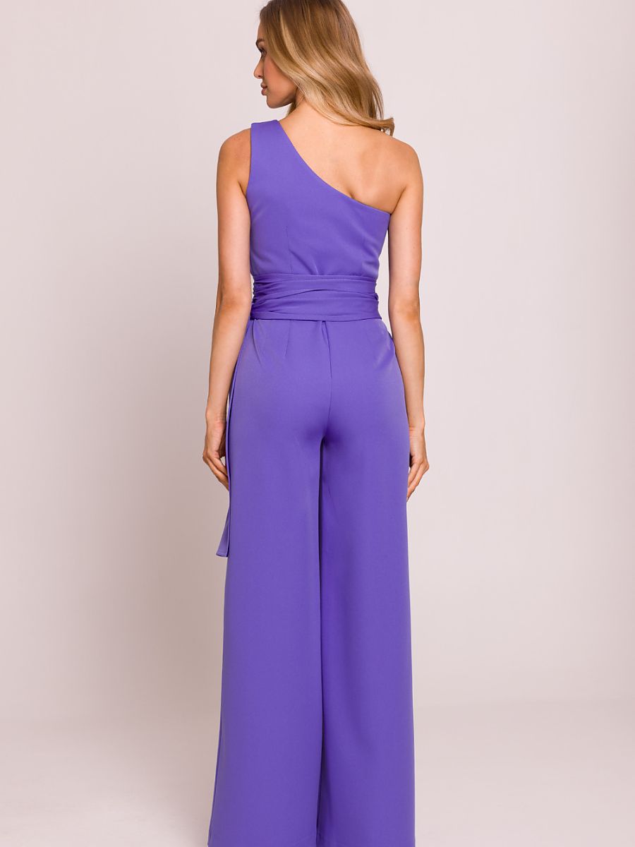 Elegancki, asymetryczny kombinezon z motywem na jedno ramię, który przyciąga wzrok swoją wyjątkową formą. Długie szarfy wszyte do boków nadają mu lekkości i efektownego charakteru, pozwalając na ciekawe stylizowanie. Lekko poszerzone nogawki zapewniają komfort i elegancki wygląd. Model zapinany na kryty zamek z boku, co gwarantuje idealne dopasowanie. Całość zaprojektowana i uszyta w Polsce z najwyższą dbałością o detale, łącząc nowoczesność z klasyką.
