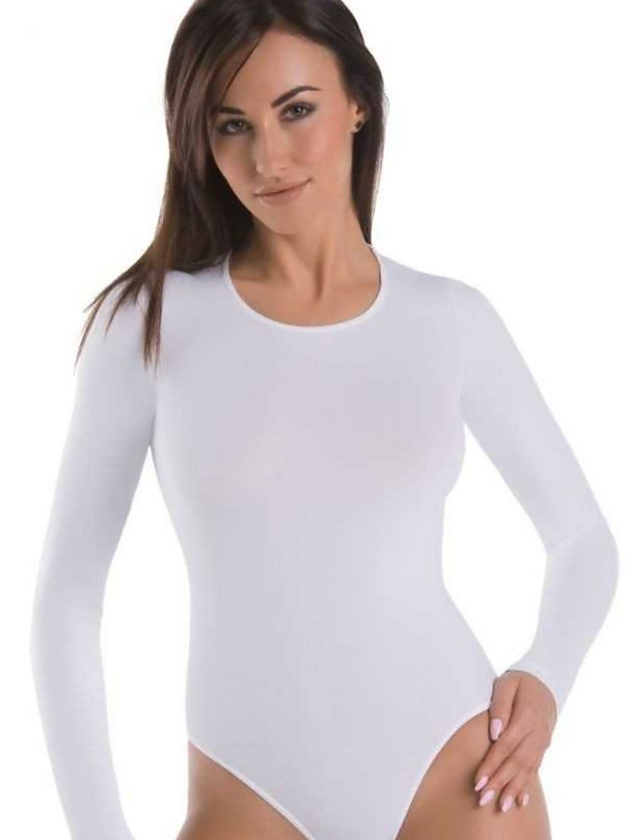 Klasyczne damskie body z wysokiej jakości wiskozy, przyjemne w dotyku i dopasowane do kobiecego ciała. Body damskie ma długie rękawy, które są dopasowane do nadgarstka i nie opinają ramion. Tkanina nie prześwituje, ukrywa ciało i nie wybrzusza się w łokciach. Dekolt jest półokrągły i efektownie odsłania piersi. W okolicy krocza znajduje się trzystopniowe zapięcie na haftki, które w razie potrzeby pozwalają na indywidualną regulację długości i dopasowanie do kształtu ciała. W obszarze nóg zastosowano cienką gumkę, która nie uwiera i wygodnie układa się na nodze. To body może być noszone na co dzień ze spodniami lub spódnicami. Może być również noszone pod obcisłe ubrania, aby kształtować sylwetkę. Każda kobieta powinna mieć w swojej szafie klasyczne wiskozowe body, takie jak to. Pakiet zawiera body w kolorze biały oraz czarnym.
