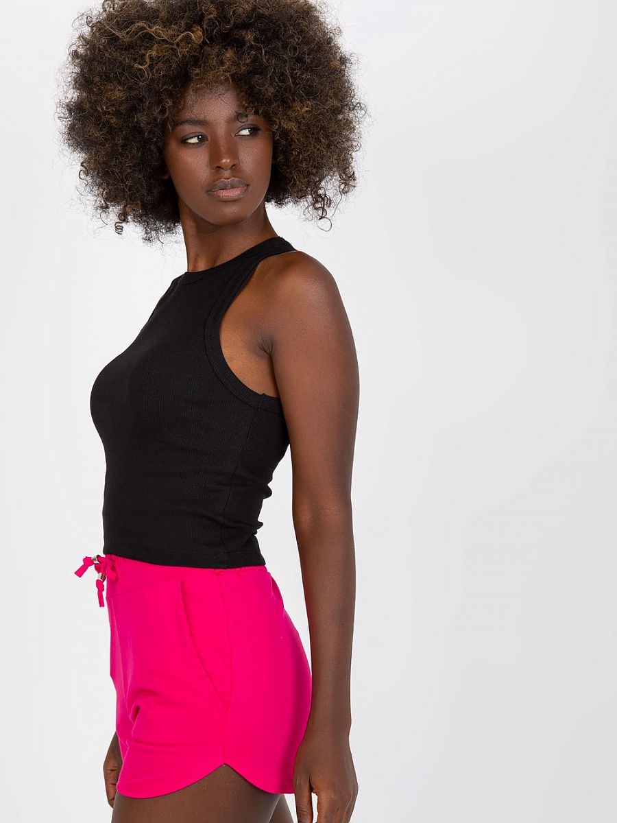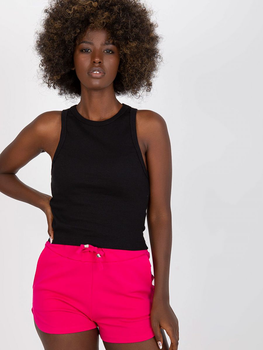 Klasyczny top z prążkowanej tkaniny, dekolt okrągły. Koszulka w kolorze czarnym, idealna do wielu stylizacji.