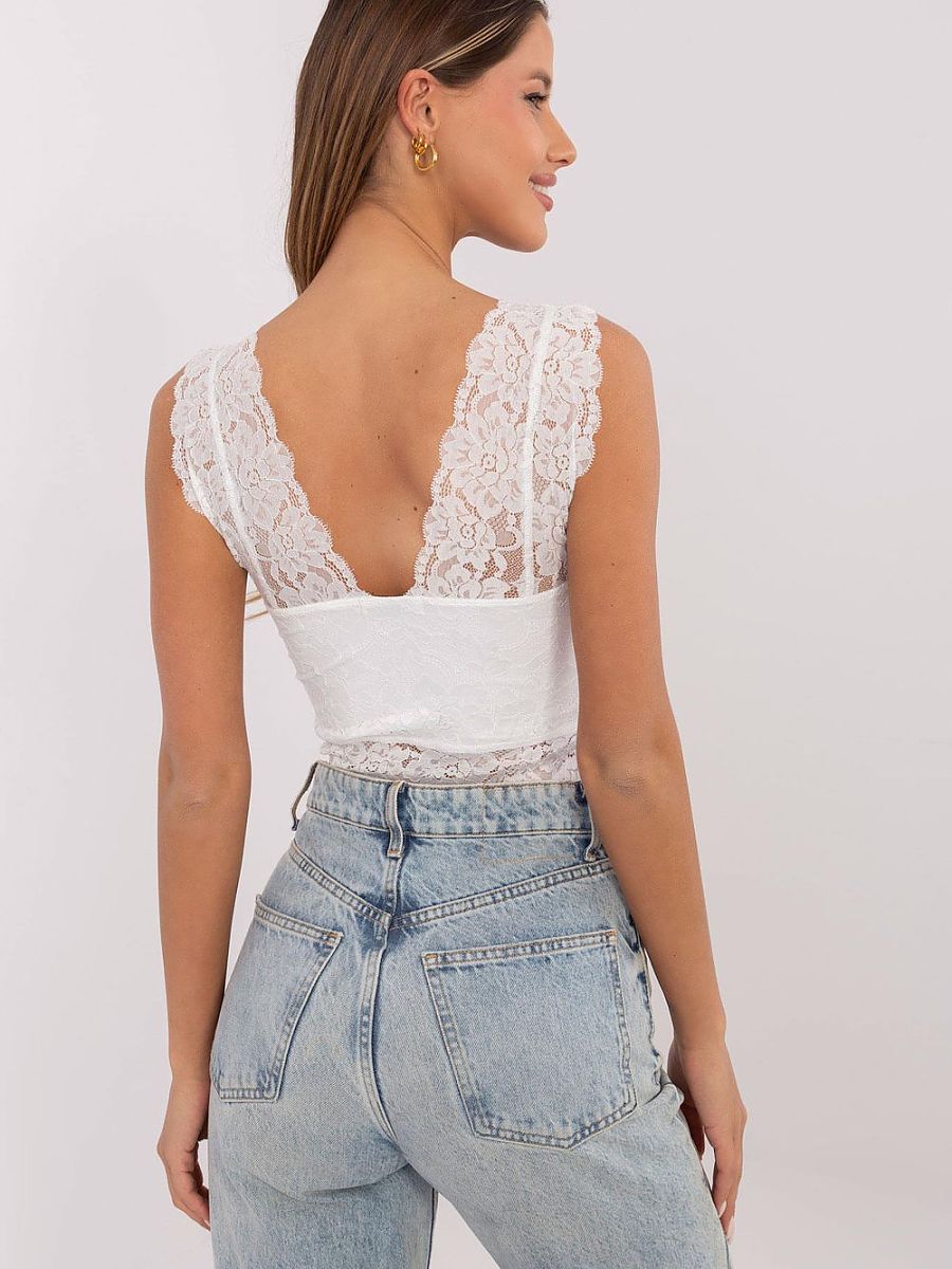 Elegancki i stylowy ażurowy top to idealny wybór dla kobiet ceniących subtelne detale i modowy charakter. Wykonany z lekkiego, elastycznego materiału na bazie poliamidu i elastanu, zapewnia komfort noszenia i doskonałe dopasowanie. Krótka długość oraz dekolt w serek pięknie podkreślają sylwetkę, a delikatna koronka dodaje całości kobiecego uroku. Top posiada podszewkę, co gwarantuje wygodę i pewność noszenia. Bez rękawów, świetnie sprawdzi się w letnich stylizacjach, zarówno w połączeniu z jeansami, jak i elegancką spódnicą. Idealny na co dzień, a także na wyjątkowe okazje.