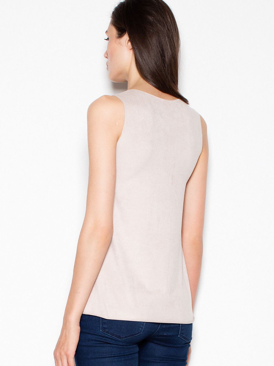 Lekka zamszowa bluzka na ramiączkach z półokrągłym dekoltem. Model o luźnym kroju, świetny do codziennych stylizacji.