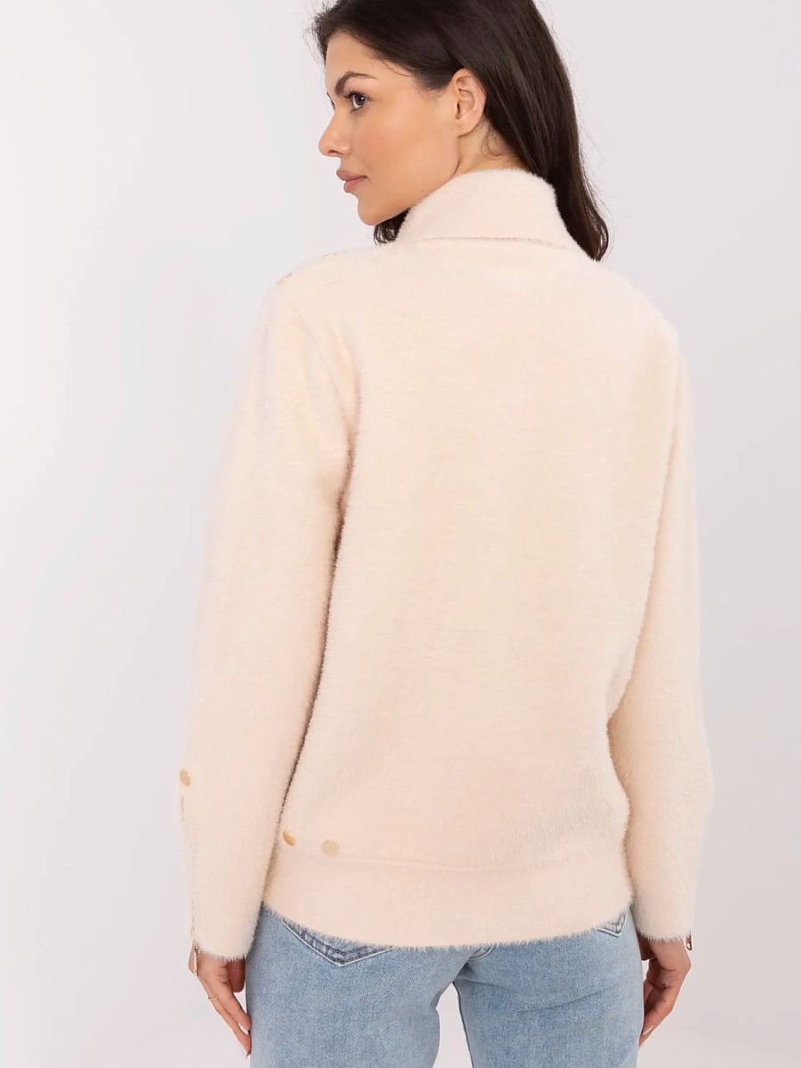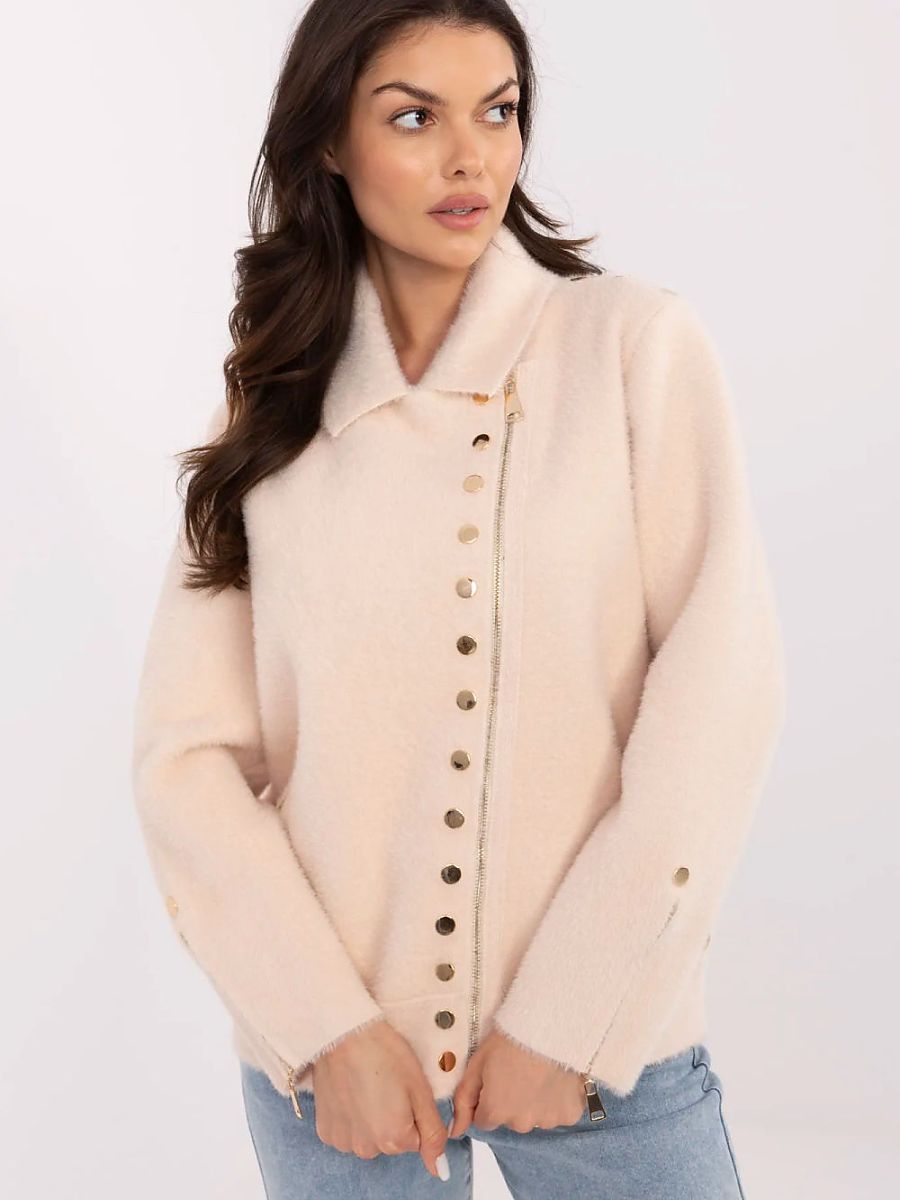 Stylowa kurtka damska o casualowym charakterze, idealna na sezon przejściowy jesień, zimę oraz wiosnę. Wykonana z wysokiej jakości mieszanki materiałów: wełny, poliestru, angory i wiskozy, zapewnia komfort noszenia oraz odpowiednią ochronę przed chłodem. Model o standardowej długości, bez kaptura, zapinany na zamek błyskawiczny. Na przodzie ozdobne napy dodające eleganckiego akcentu. Długi rękaw zakończony stylowym zapięciem przy nadgarstku. Gładka struktura materiału podkreśla minimalistyczny, ale nowoczesny wygląd. Dodatkowym atutem są praktyczne kieszenie zapinane na zamek, które pozwalają bezpiecznie przechowywać drobiazgi. Doskonała na co dzień do pracy, na spacer czy zakupy, łączy funkcjonalność z modnym designem.