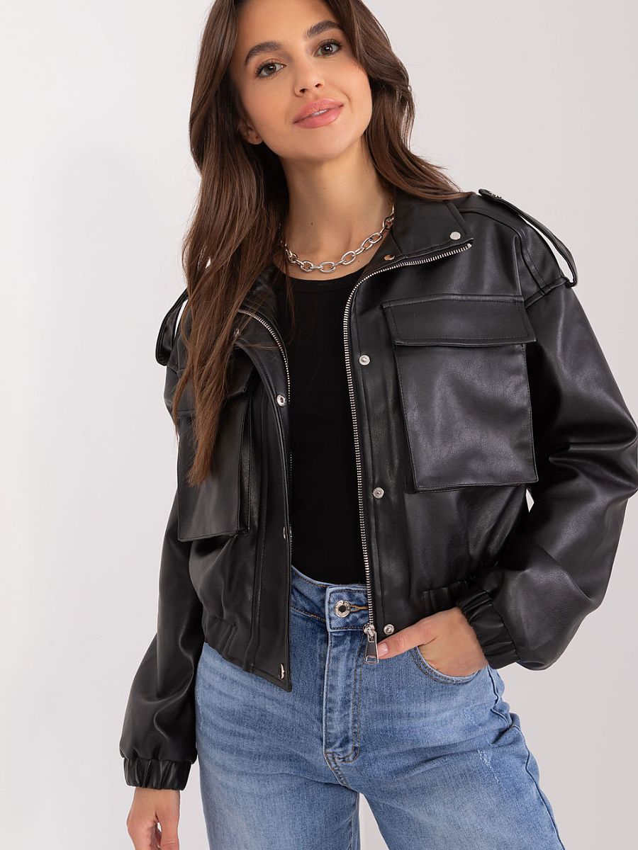 Damska kurtka przejściowa z ekoskóry to doskonałe połączenie stylu i funkcjonalności. Wykonana z wysokiej jakości materiałów, takich jak poliuretan, bawełna, wiskoza i poliester, zapewnia wygodę oraz trwałość. Jej casualowy charakter i gładki wzór sprawiają, że świetnie komponuje się z codziennymi stylizacjami. Krótki fason podkreśla sylwetkę, a długi rękaw zapewnia komfort noszenia w chłodniejsze dni. Kurtka zapinana jest na zamek kryty listwą na zatrzaski, co dodaje jej eleganckiego wykończenia. Praktyczne, duże naszyte kieszenie z patkami podkreślają modny, użytkowy styl, a pagony na ramionach nadają całości charakteru. Model posiada podszewkę, dzięki czemu jest idealnym wyborem na przejściowe pory roku.