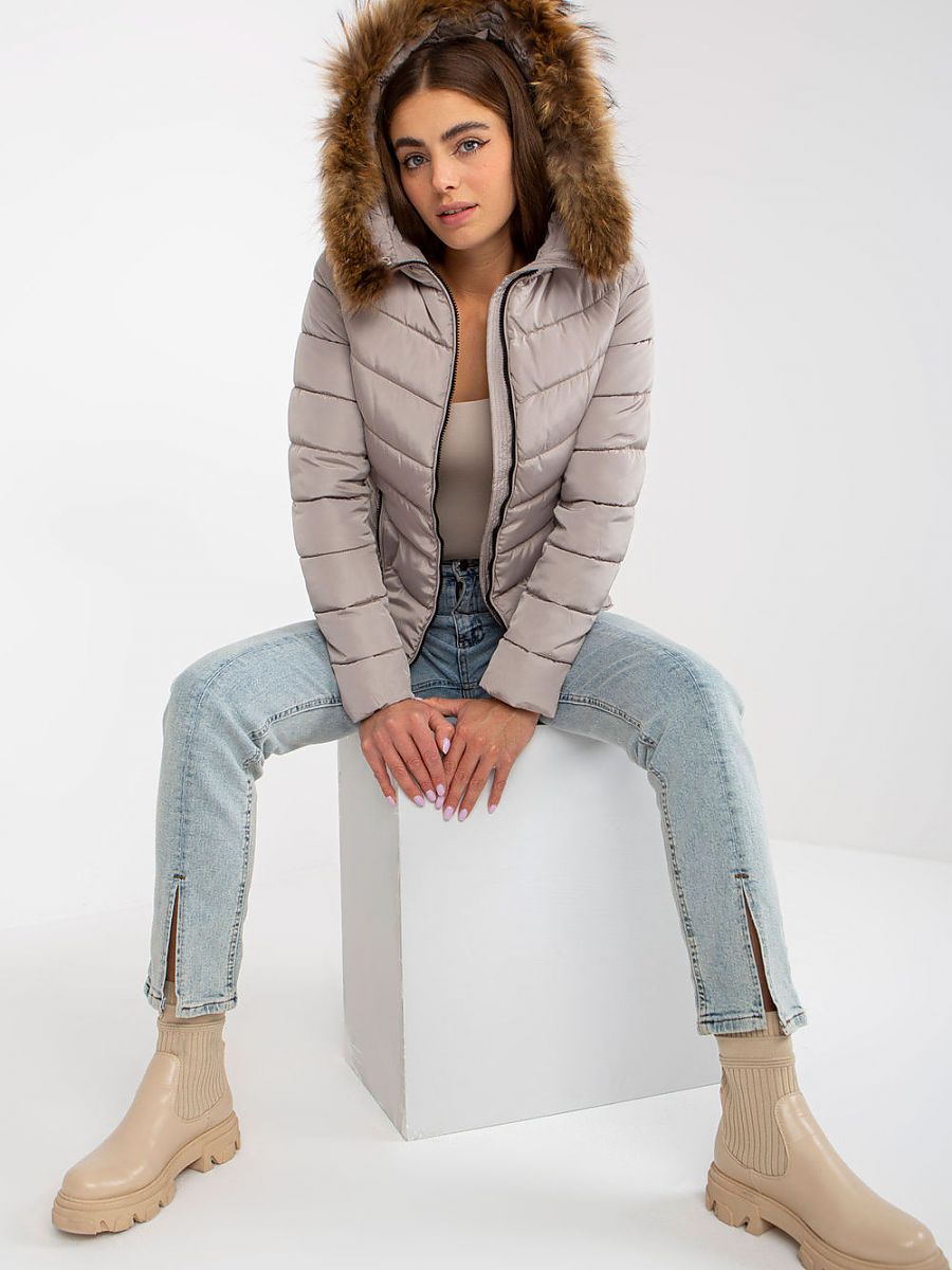 Krótka kurtka pikowana zapinana na zamek, w całości na podszewce. Kurtka posiada kaptur z futerkiem, oraz kieszenie wsuwane.