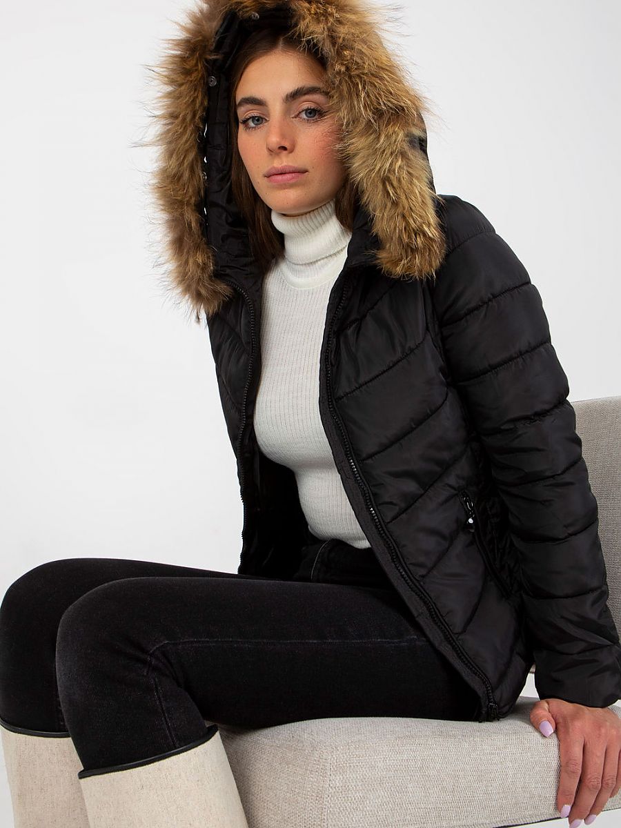 Krótka kurtka pikowana zapinana na zamek, w całości na podszewce. Kurtka posiada kaptur z futerkiem, oraz kieszenie wsuwane.