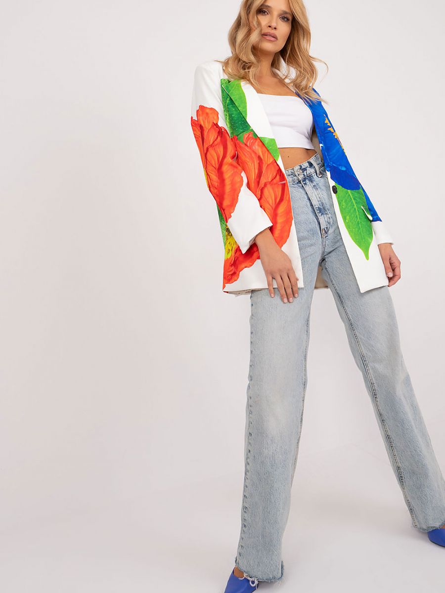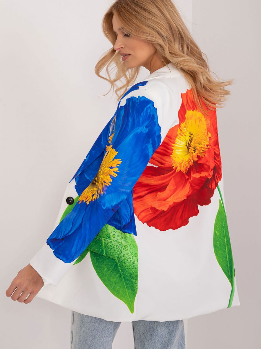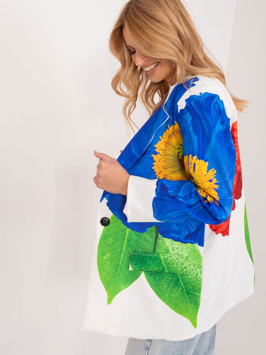 Marynarka z ciekawym nadrukiem w duże kwiaty to wyjątkowy element garderoby, który wnosi do stylizacji nutę świeżości i romantyzmu. Doskonale sprawdzi się na różnorodne okazje, od codziennych sytuacji, przez pracę, po wizytowe wyjścia czy imprezy, dodając oryginalności całej stylizacji. Nadruk w formie dużych kwiatów nadaje marynarce wyrazisty i zdecydowany charakter, jednocześnie pozostając stylowym elementem casualowej garderoby. Styl casual pozwala na noszenie jej na co dzień, podczas pracy, a także na bardziej uroczyste okoliczności. Marynarka wykonana głównie z poliestru jest lekka, wygodna i nadaje się na różne pory roku, zarówno w chłodniejsze dni jesienno-zimowe, jak i w cieplejsze wiosenno-letnie dni. Standardowa długość marynarki, długi rękaw oraz jednorzędowe zapięcie na guzik sprawiają, że jest to uniwersalny fason, łatwo łączący się z różnymi elementami garderoby. Obecność podszewki zwiększa komfort noszenia i nadaje marynarce solidnej struktury. Ta marynarka z kwiatowym nadrukiem to idealny wybór dla kobiet, które pragną wnieść do swojej garderoby nutę świeżości i delikatności. Doskonale pasuje zarówno do codziennych stylizacji, jak i do bardziej formalnych kreacji, tworząc wyjątkową i kobiecą atmosferę.