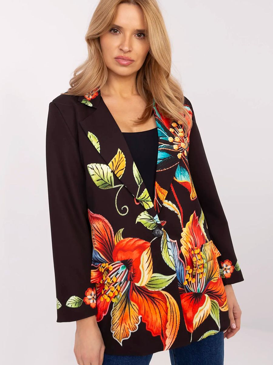Casualowa marynarka damska z imitacji jeansu to idealne połączenie stylu i wygody. Wykonana z lekkiej mieszanki wiskozy i poliestru, doskonale sprawdzi się w sezonie wiosna/lato. Standardowa długość i długi rękaw nadają jej uniwersalnego charakteru, a jednorzędowe zapięcie na guzik podkreśla klasyczny fason. Delikatny kwiatowy nadruk dodaje kobiecego uroku, czyniąc ją świetnym wyborem na co dzień. Marynarka posiada wszyte poduszki na ramionach, które subtelnie modelują sylwetkę, oraz podszewkę dla większego komfortu noszenia. Idealna do casualowych stylizacji, świetnie komponuje się zarówno ze spodniami, jak i spódnicami.
