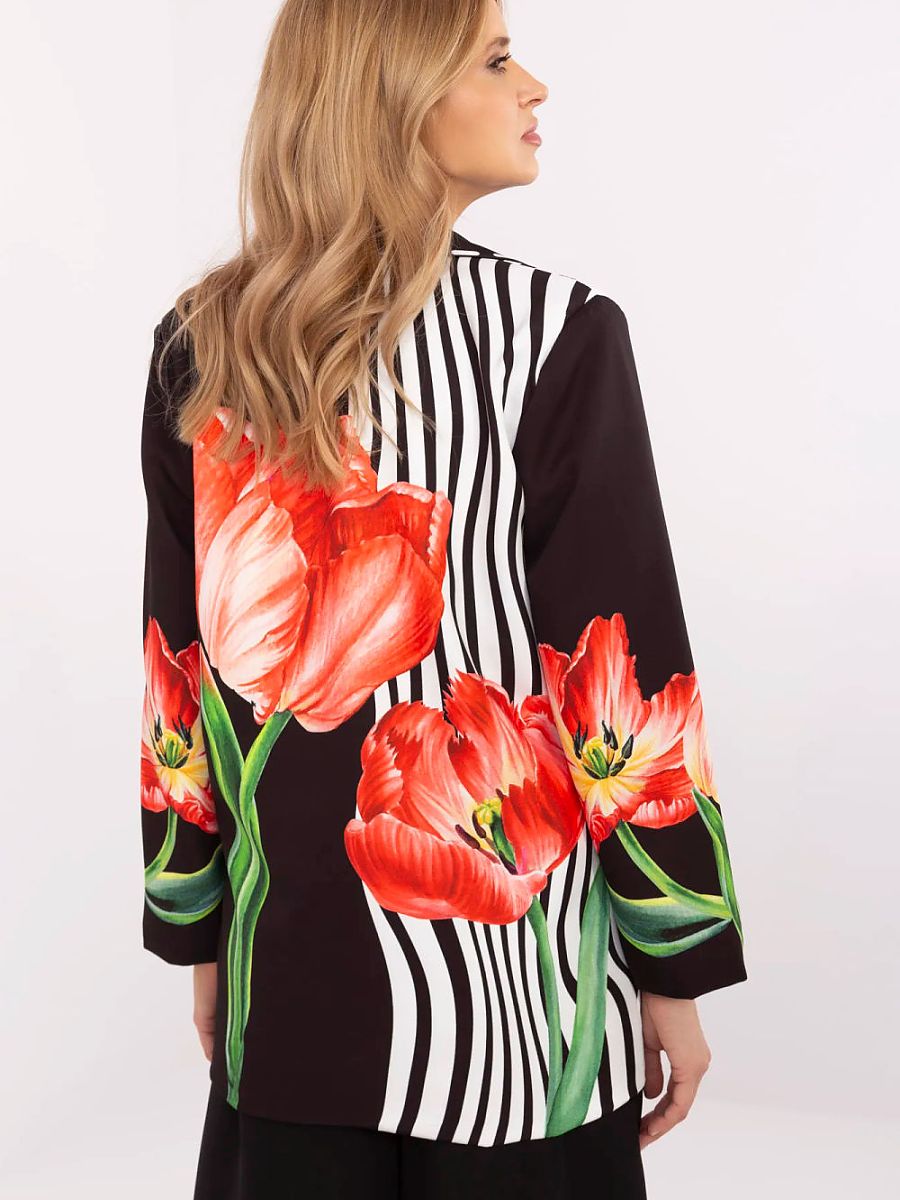 Casualowa marynarka damska to idealne połączenie stylu i wygody. Wykonana z lekkiej mieszanki wiskozy i poliestru, doskonale sprawdzi się w sezonie wiosna/lato. Standardowa długość i długi rękaw nadają jej uniwersalnego charakteru, a jednorzędowe zapięcie na guzik podkreśla klasyczny fason. Delikatny kwiatowy nadruk dodaje kobiecego uroku, czyniąc ją świetnym wyborem na co dzień. Marynarka posiada wszyte poduszki na ramionach, które subtelnie modelują sylwetkę, oraz podszewkę dla większego komfortu noszenia. Idealna do casualowych stylizacji, świetnie komponuje się zarówno ze spodniami, jak i spódnicami.