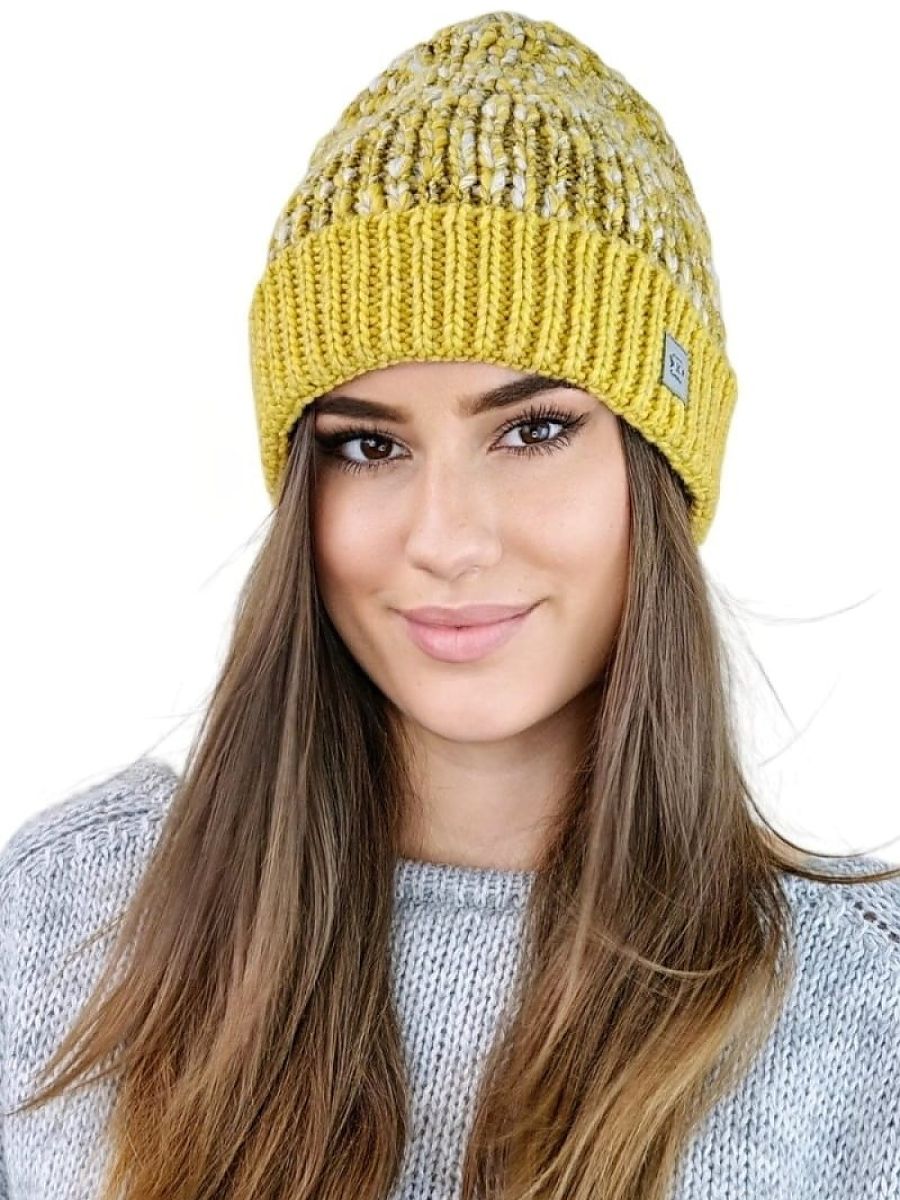 MORELA barwna młodzieżowa czapka z wywinieciem kolor musztardowy – Kamea