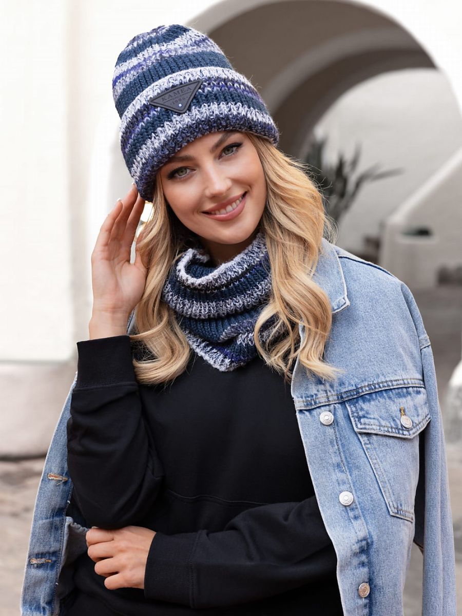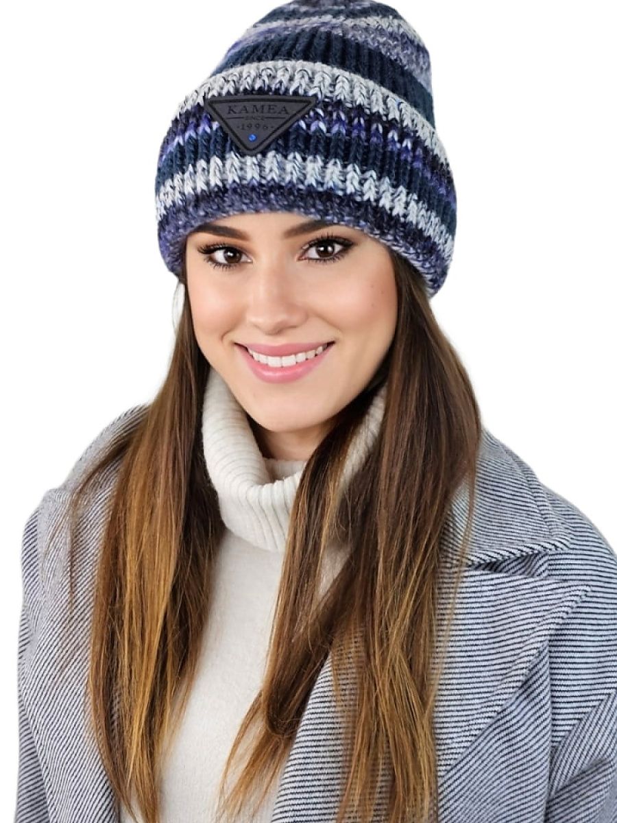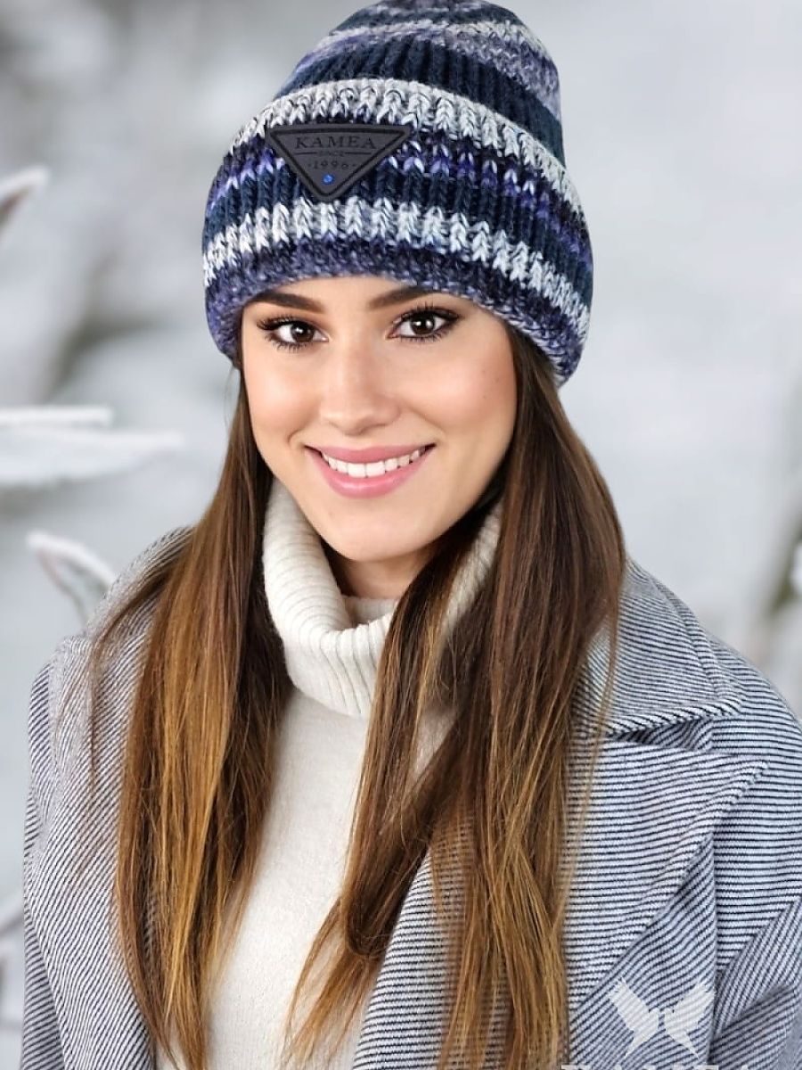MUSCARI zimowa czapka damska w paski z cekinami kolor jeans – Kamea