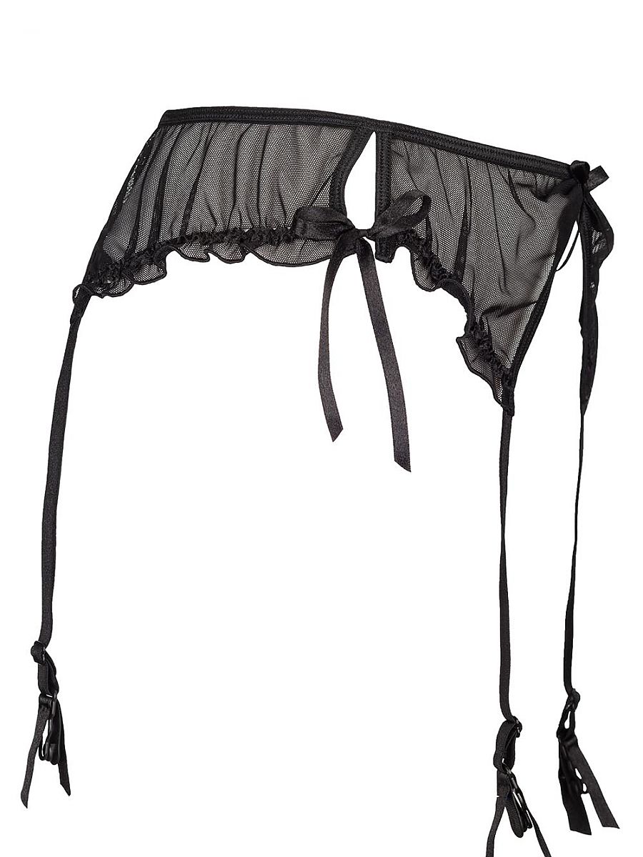 Kuszący rozcięciami z boku wykonany z delikatnej, tiulowej siateczki pas do pończoch . Uroku dodają zalotne falbanki idealnie współgrające z majteczkami oraz satynowa kokardka z przodu i dwie wiążące rozcięcia. Do kompletu polecamy seksowny półbiustonosz Axami V- 6451 oraz majteczki V-6458.