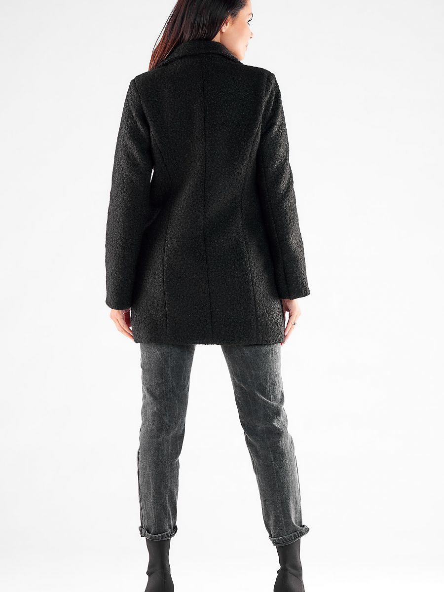 Elegancki, dwurzędowy płaszcz zapinany na duże, czarne guziki. Idealnie sprawdzi się na wiele okazji. Płaszcz w całości na podszewce.