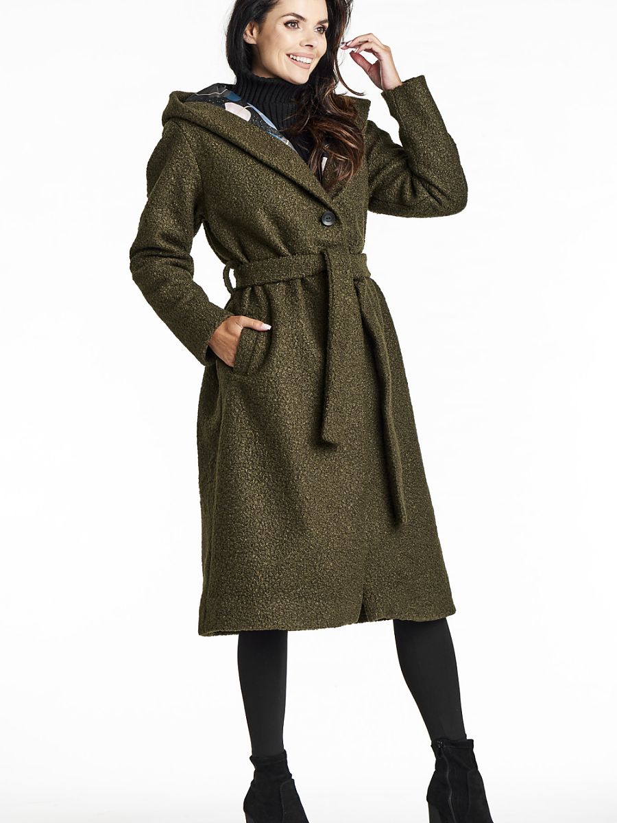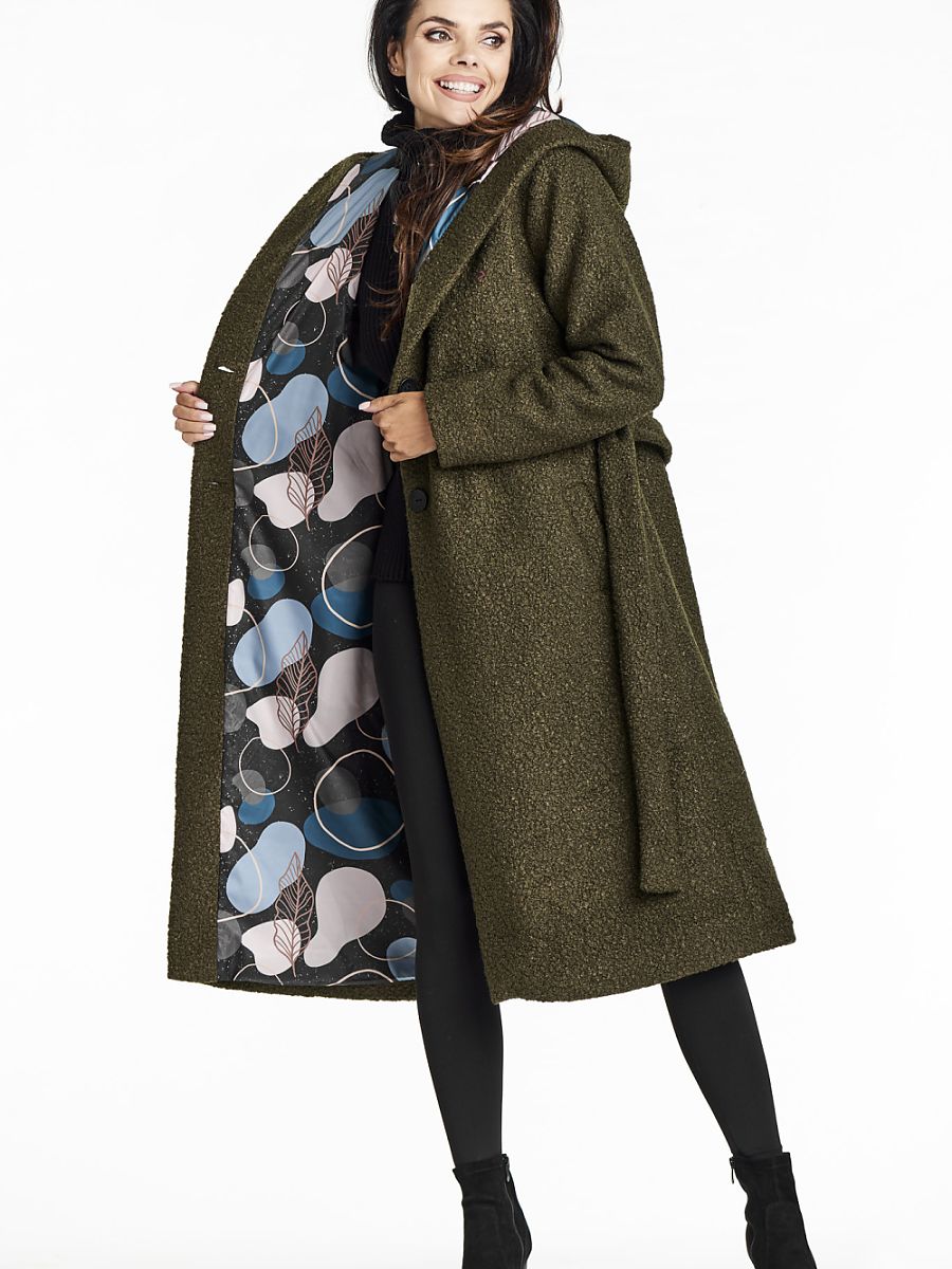 Elegancki płaszcz z kołnierzem szalowym i kapturem. Odkryj elegancję i styl z płaszczem z kołnierzem szalowym i kapturem od polskiej marki Awama. Ten zielony płaszcz na jesień łączy elegancję z casualowym urokiem, idealny na każdą okazję. Płaszcz wyróżnia się eleganckim krojem z kołnierzem szalowym i kapturem, który dodaje funkcjonalności. Pasek w talii podkreśla kobiecą sylwetkę, a zapięcie na guziki dodaje elegancji. Kontrastowa podszewka w ciekawych wzorach wprowadza oryginalny akcent. Uszyty z tkaniny bouclé, płaszcz zapewnia elegancję i ciepło. Bouclé dodaje teksturalnego uroku, a kontrastowa podszewka wyróżnia płaszcz. Zielony płaszcz pasuje na każdą okazję, od spacerów po formalne wyjścia. Doskonale komponuje się z różnymi rodzajami obuwia.