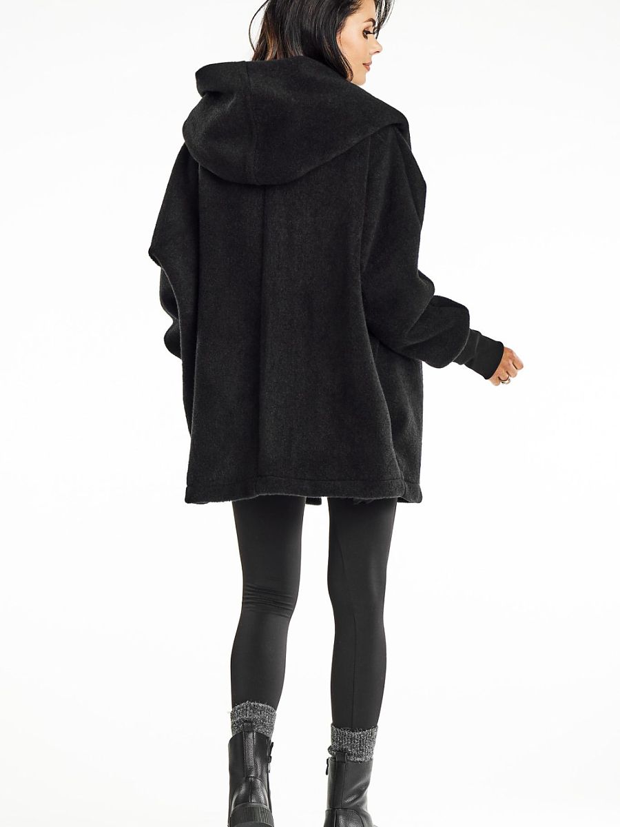 Kimonowy płaszcz z kapturem o luźnym fasonie. Dodaj klasy i wygody swojej jesiennej garderobie z kimonowym płaszczem z kapturem od polskiej marki Awama. Stylowy czarny płaszcz łączy elegancję z casualowym komfortem, tworząc idealny wybór na chłodniejsze dni. Kimonowy krój z kapturem oferuje elegancję i funkcjonalność, a długość do bioder zapewnia swobodę ruchów. Guziki dodają klasycznego akcentu, a kaptur chroni przed wiatrem i deszczem. Płaszcz wykonany z miękkiej dzianiny typu miś zapewnia ciepło i komfort. Kieszenie zwiększają jego funkcjonalność, a uniwersalny styl pasuje do kowbojek, kozaków i botków.