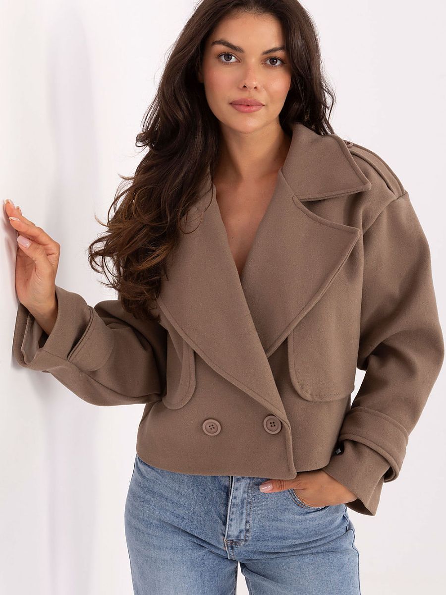 Krótki damski trencz to klasyczny płaszcz przejściowy w casualowym stylu, który świetnie sprawdzi się zarówno na co dzień, jak i do pracy. Wykonany z poliestru, prezentuje się elegancko i jest praktyczny w użytkowaniu, a dzięki gładkiej fakturze pozostaje ponadczasowy i uniwersalny. Model o krótkiej długości wyposażony jest w długi rękaw, szerokie klapy i pagony na ramionach, które nadają mu charakterystycznego, trenczowego wyglądu. Dwurzędowe zapięcie na guziki podkreśla klasyczny fason, a podszewka zwiększa komfort noszenia i staranność wykończenia. To lekki płaszcz bez ocieplenia, idealny na sezon jesień?zima?wiosna. Doskonale uzupełni codzienne stylizacje, dodając im elegancji i miejskiego szyku.