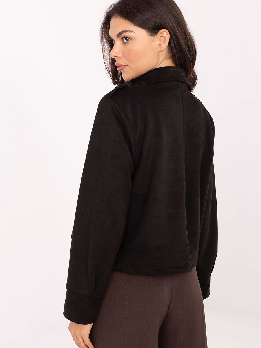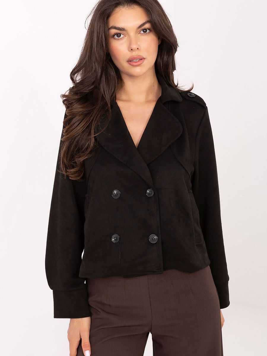 Krótki płaszcz z zamszu to stylowa propozycja w klimacie casual, idealna na co dzień i do pracy. Wykonany z mieszanki poliestru i elastanu, łączy wygodę z eleganckim wyglądem. Dwurzędowe zapięcie na guziki i wykładane klapy nadają mu klasycznego charakteru. Pagony na ramionach podkreślają modny, nieco militarny styl. Gładki wzór i krótka długość sprawiają, że płaszcz świetnie komponuje się z różnymi stylizacjami. Długi rękaw czyni go praktycznym wyborem na chłodniejsze dni sezonu jesień/zima/wiosna. Model przejściowy, bez ocieplenia, doskonały jako lekka okrycie wierzchnie. To uniwersalny płaszcz, który łączy prostotę z elegancją i doskonale dopełni codzienne stylizacje.