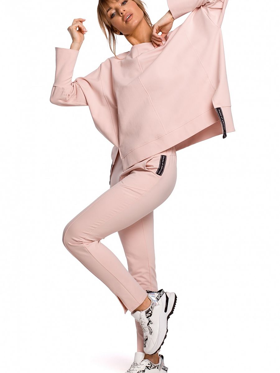 Spodnie na czasie to takie, które możesz założyć na co dzień, do sportowych butów. Te mają prosty krój nogawek z rozporkami z przodu i ciekawymi przeszyciami na udach. Uszyte są z miękkiej dzianiny bawełnianej i mają elastyczny pas.