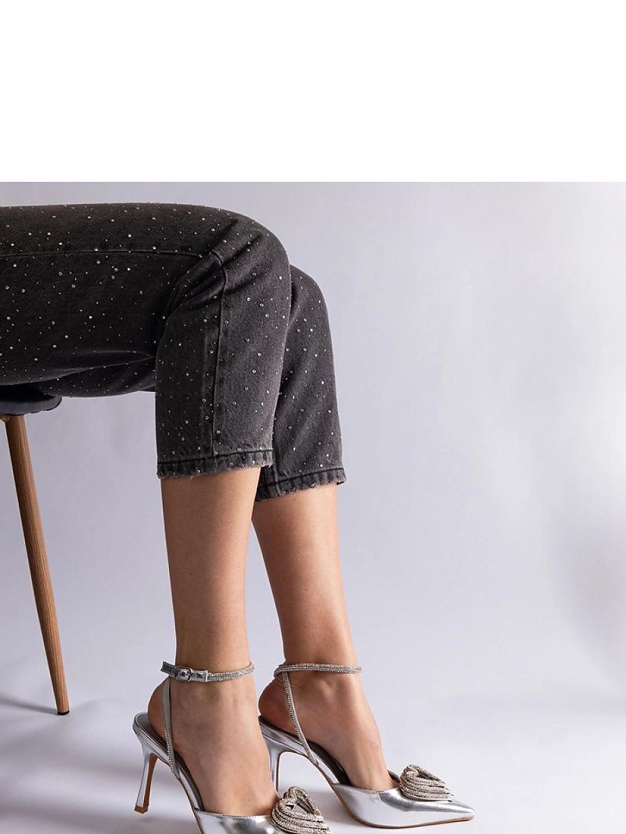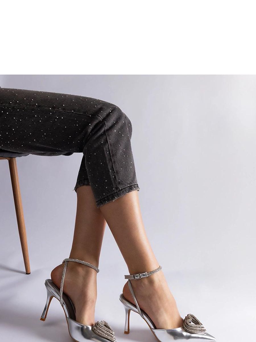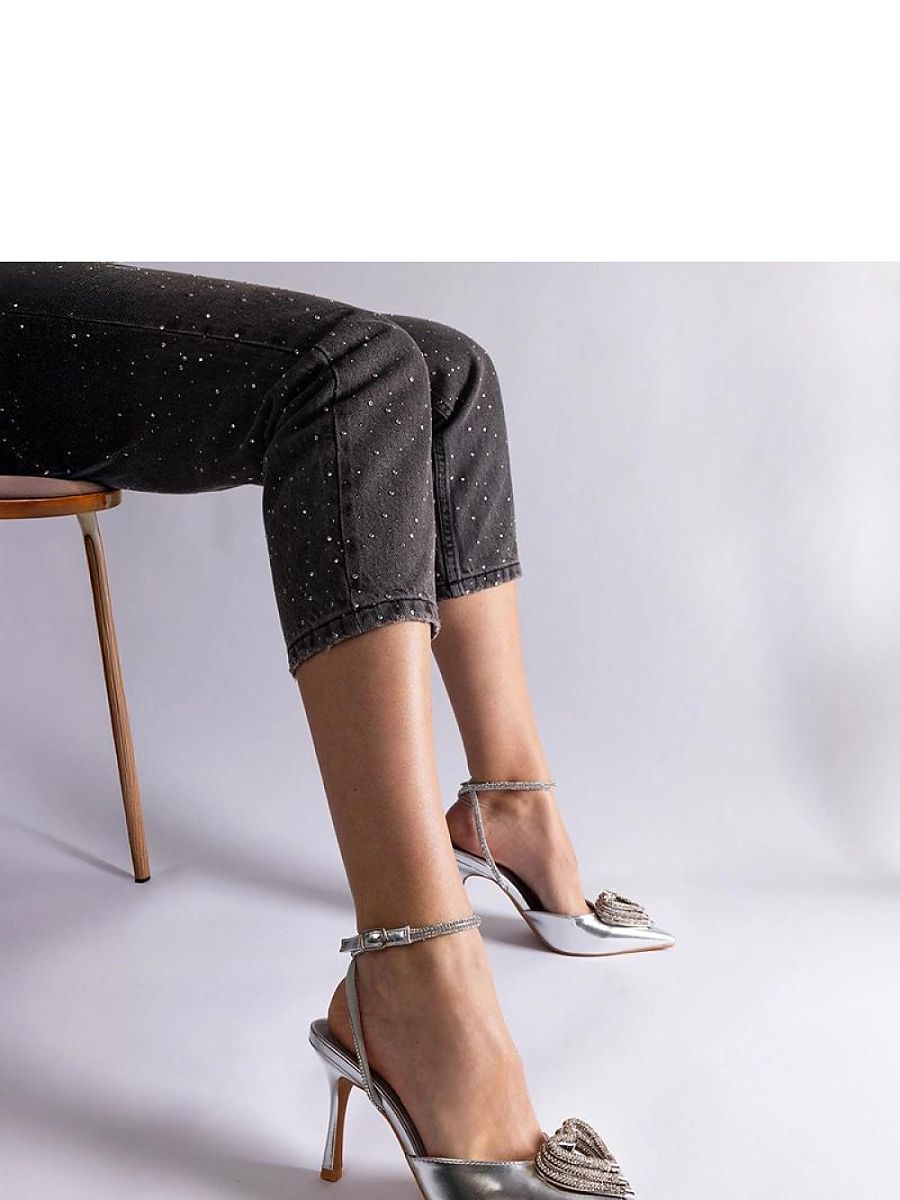 Srebrne szpilki z odkrytą pięta zdobione cyrkoniami Isoda – Solea