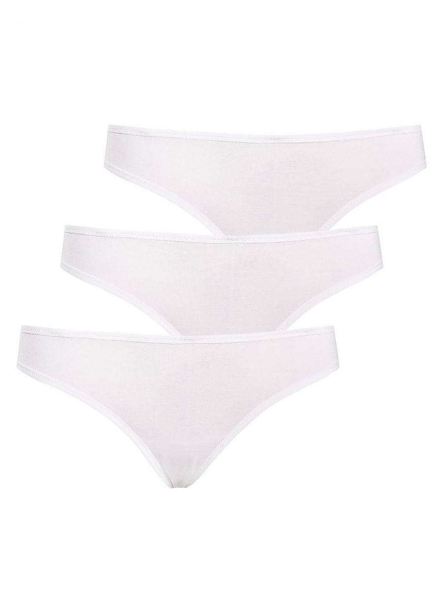 Damskie stringi bambusowe w kolorze białym. Występują w 3-packu w tym samym kolorze i w rozmiarach od XS do XXL. Zestawy te są bardzo popularne wśród kupujących i w dobrej cenie. Stringi posiadają niższy stan, pasek między pośladkami jest szerszy i nie podrażnia skóry. Stringi dopasowują się do sylwetki i eksponują ładnie pośladki. W środku od wewnątrz podszyte są podwójną warstwą włókna, które gwarantuje zachowanie świeżości podczas użytkowania.