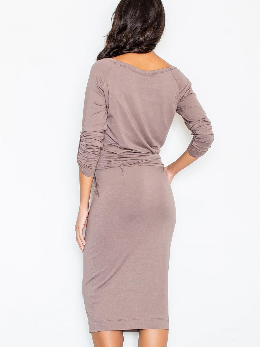 Elegancka sukienka damska stworzona z myślą o kobietach ceniących sobie modę i wygodę. Sukienka o luźnym kroju, dekolt w łódkę. Sukienka posiada długi rękaw z możliwością podpięcia. W pasie sukienka jest wiązania.