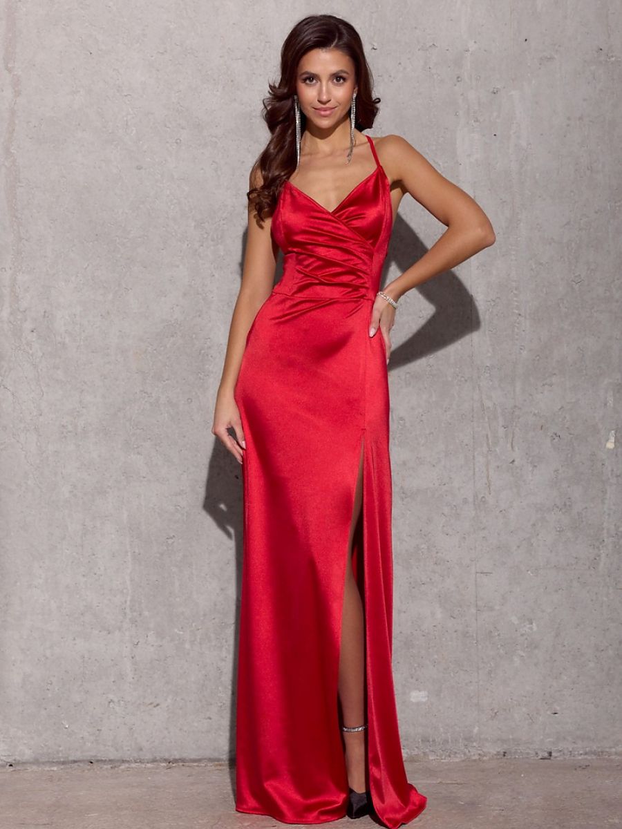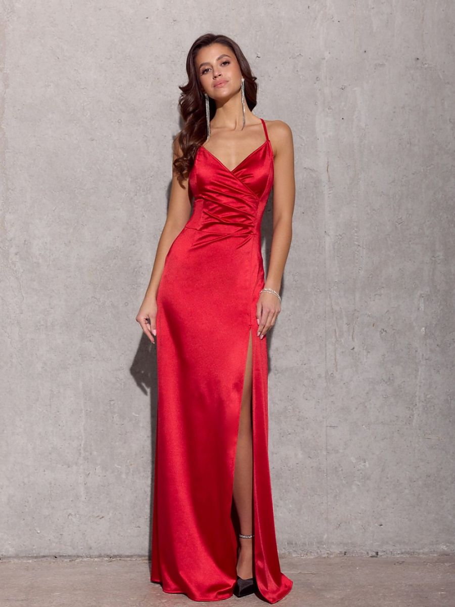 Długa sukienka na ramiączkach Alessandra została wykonana z eleganckiej satynowej tkaniny, która efektownie otula sylwetkę i podkreśla atuty. Przekładany dekolt oraz odważne wiązanie na plecach przyciągają wzrok i zapewniają niebanalny i elegancki charakter kreacji. Długość maxi i rozcięcie odsłaniające udo dodają drapieżności i tajemniczości. Sznurowanie na plecach, poza efektem wizualnym, daje możliwość regulacji i dopasowania długości ramiączek. Sukienka Alessandra idealnie sprawdzi się dla kobiet, które chcą podkreślić swoją kobiecość oraz lubią odważne i niebanalne kroje sukienek. Alessandra idealnie sprawdzi się na wszelkiego typu uroczystości, takie jak: studniówka, wesele, impreza firmowa, sylwester.