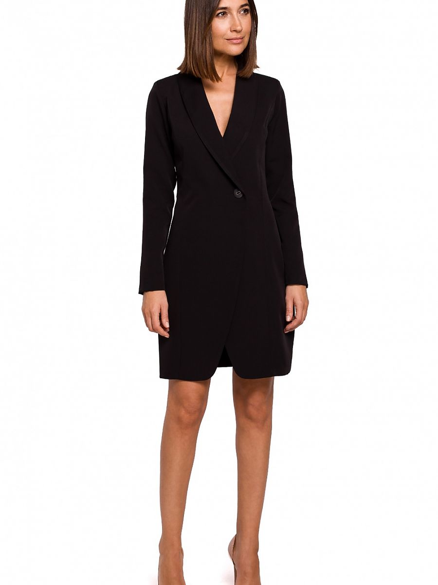 Minimalizm to esencja kobiecości. Ta niebanalna sukienka o kroju żakietowym zapinana na jeden guzik to ma. Sukienka z przodu zapinana na ozdobny guzik, w środku zapinana na dodatkowy guzik. Sukienka bez podszewki.