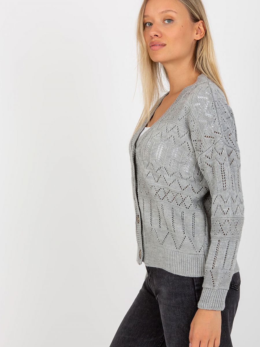 Ażurowy sweter damski zapinany na guziki. Idealny dodatek do wielu stylizacji.