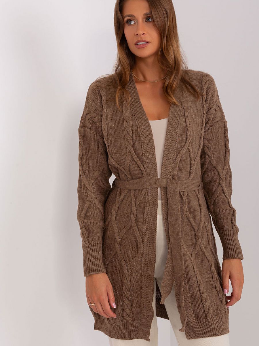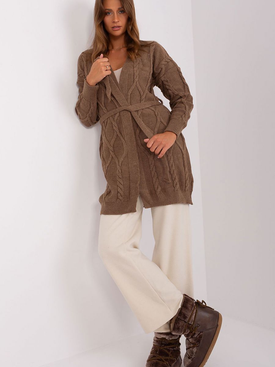 Ten kardigan to idealny wybór na co dzień. Jego urozmaicona faktura w formie warkoczyków nadaje mu wyjątkowego charakteru, co czyni go odpowiednim zarówno do codziennych sytuacji, jak i na bardziej casualowe okazje. Długi rękaw gwarantuje ciepło w chłodniejsze dni. Kardigan nie ma tradycyjnego zapięcia, ale jest wyposażony w praktyczny pasek do wiązania, który pozwala na regulację luźności i dodaje mu uroku. To wyjątkowy element garderoby, który wnosi do stylizacji nutę oryginalności.