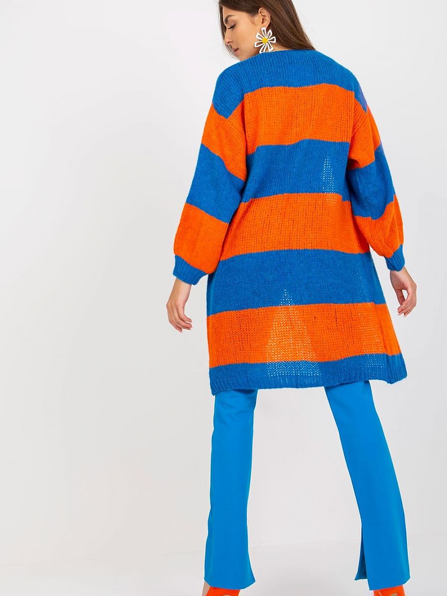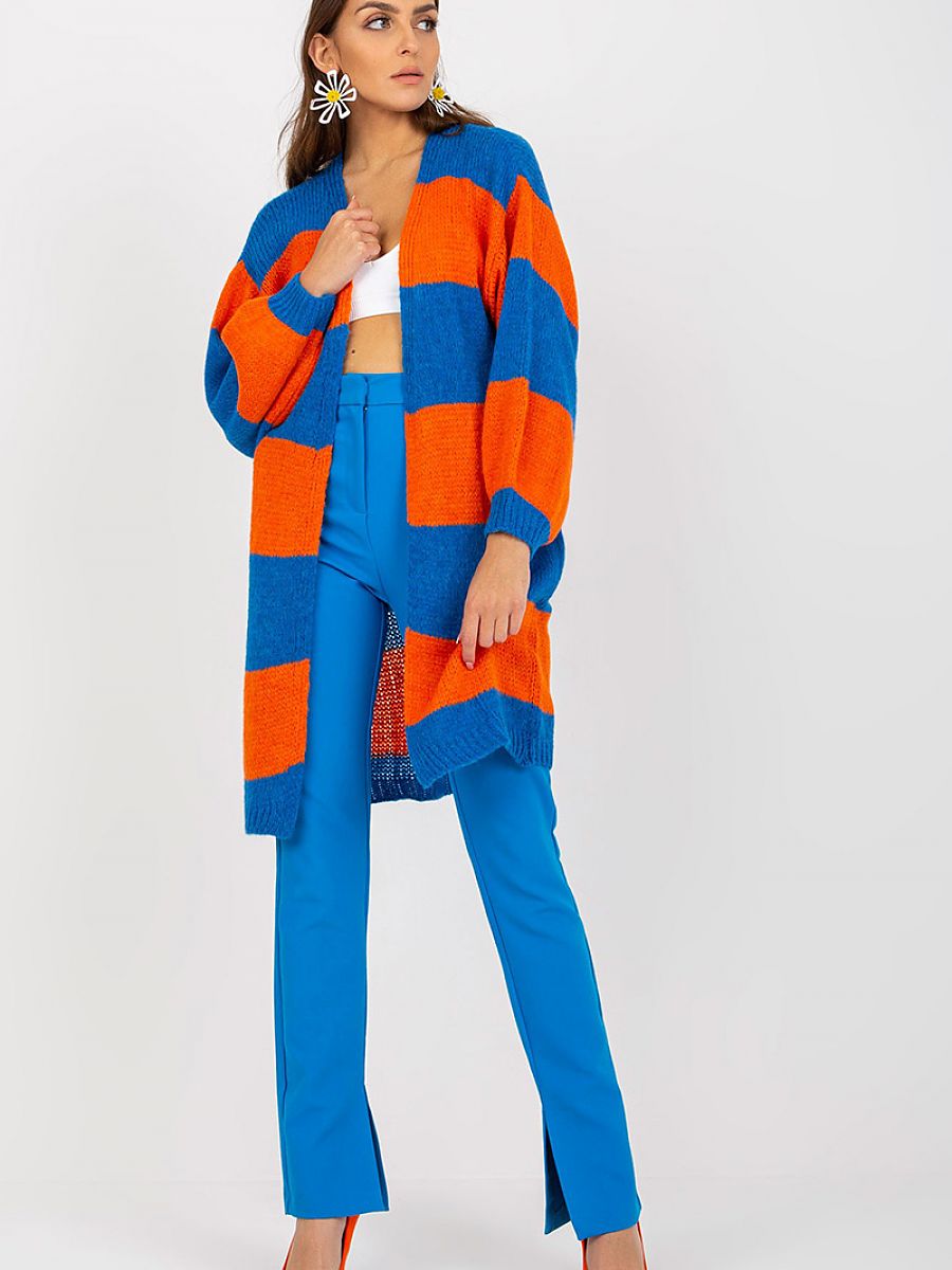 Długi luźny kardigan z długim rękawem, bez zapięcia. Kardigan w kolorowe paski.